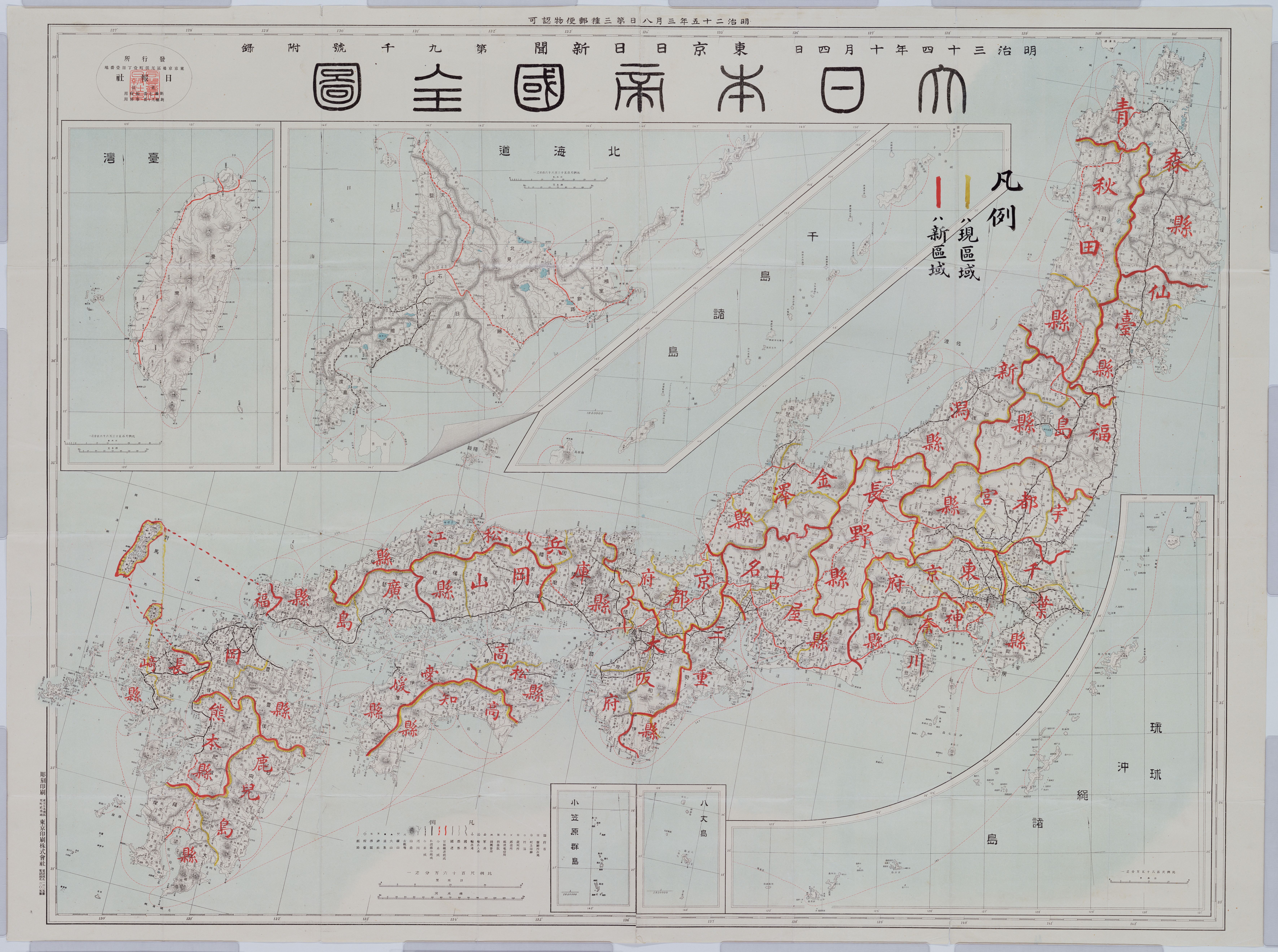 1878년 「군구정촌 편제법」, 「부현회 규칙」, 「지방세 규칙」, 「부현관 직제」, 1889년~1890년 「시제」, 「정촌제」, 「군제」, 「부현제」 제정으로 지방 제도가 정비되었다. 1902년 내무부는 19개 현을 폐지하여 도부현 수를 28개로 줄이고자 했으나, 러일 전쟁 등으로 인해 불발되었다.