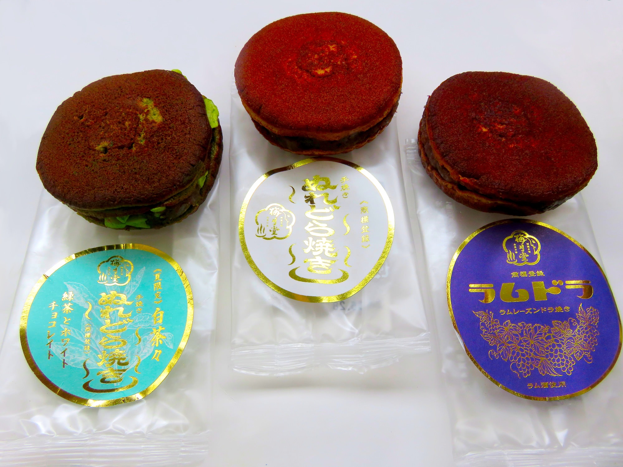 그 외에도 다크 럼(dark rum)에 절인 럼 건포도를 더한 알코올 도수 1%의 과자 '''람도라'''[44], 벚꽃과 벚꽃잎 풍미를 살린 '누레 도라야키 벚꽃', 가고시마현 유기 녹차와 프랑스 발로나 화이트 초콜릿을 조합한 '누레 도라야키 백차차', 국내산 밤을 통째로 넣은 '누레 도라야키 밤' 등 다양한 상품이 있다.