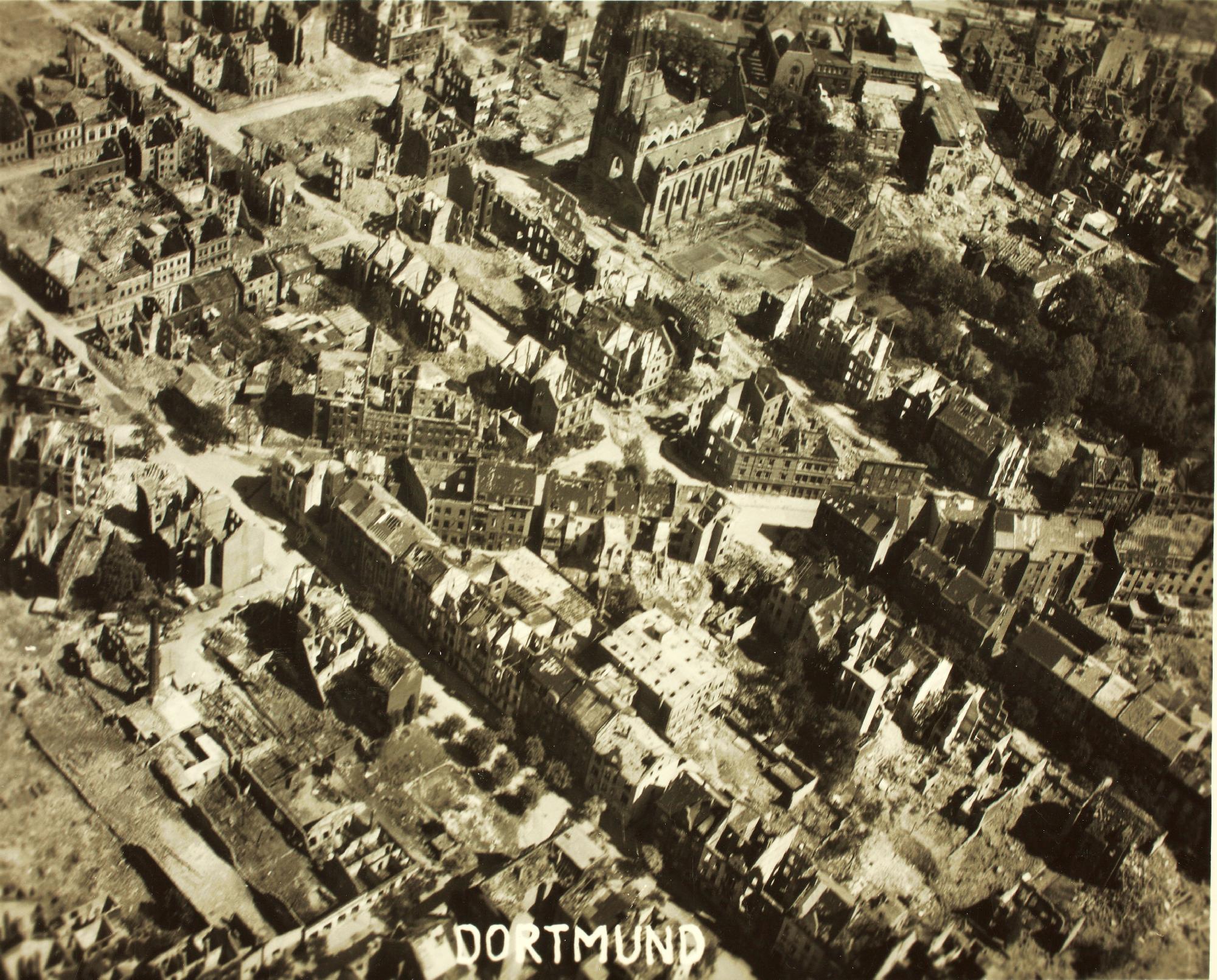 제2차 세계 대전 중 도르트문트는 105회의 공습으로 22,242톤 이상의 폭격을 받아 중심부의 90%가 파괴되었다.[146] 1945년 3월 12일 대공습에서는 4,800톤 이상의 폭탄이 투하되었으며,[147] 이는 독일 도시들에 대한 공격 중 가장 격렬한 것이었다.[147]