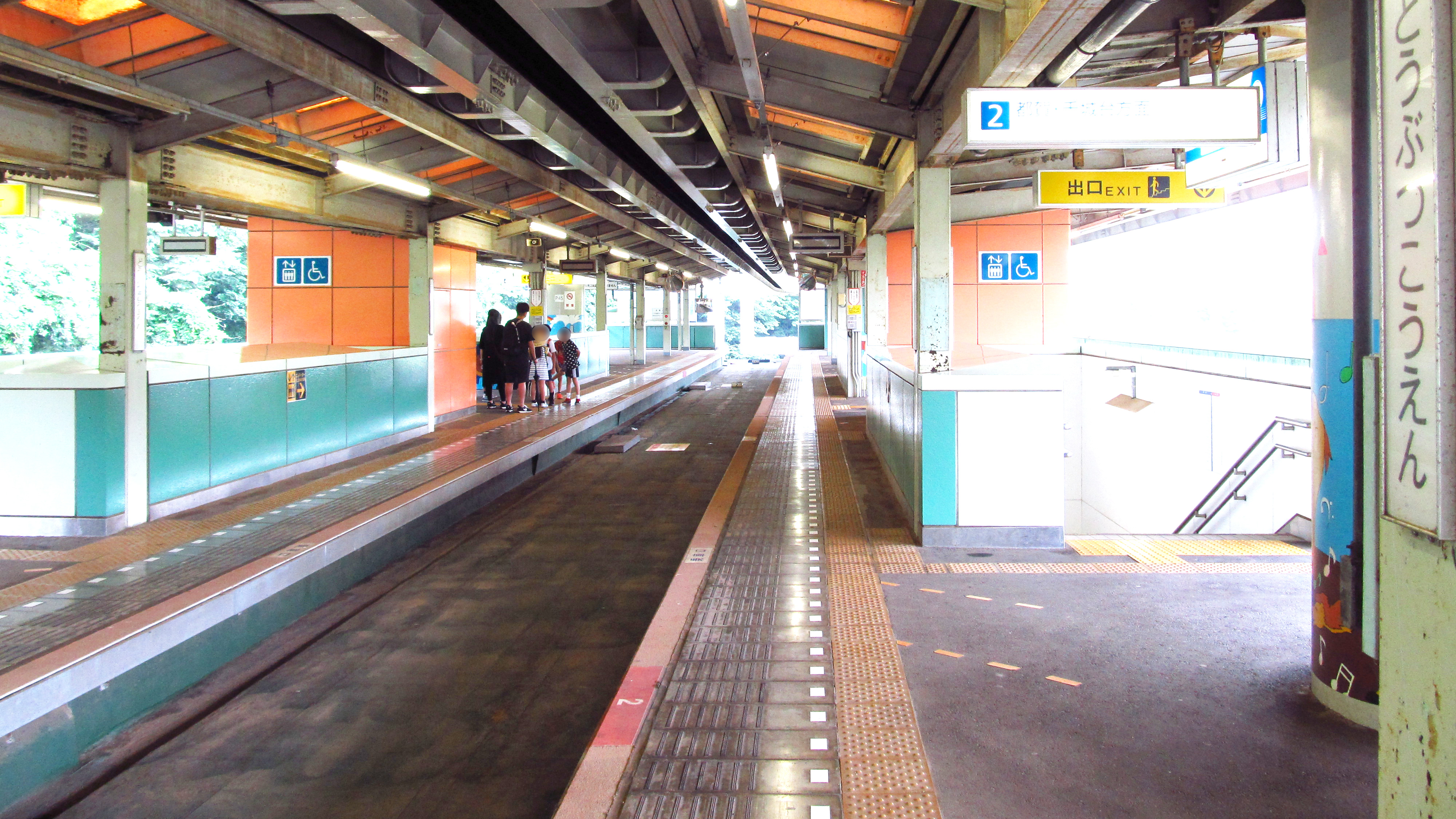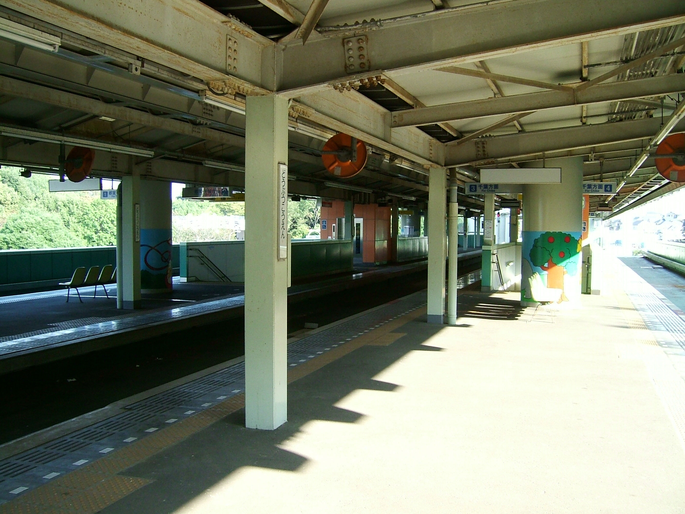 북쪽 출입구에서 보행자 데크를 통해 지바 시 동물공원의 정문 게이트와 직결된다.[3]부근에는 당역에서 연결되는 하기다이 차량기지가 있어, 당역을 시종착으로 하는 열차가 설정되어 있다.