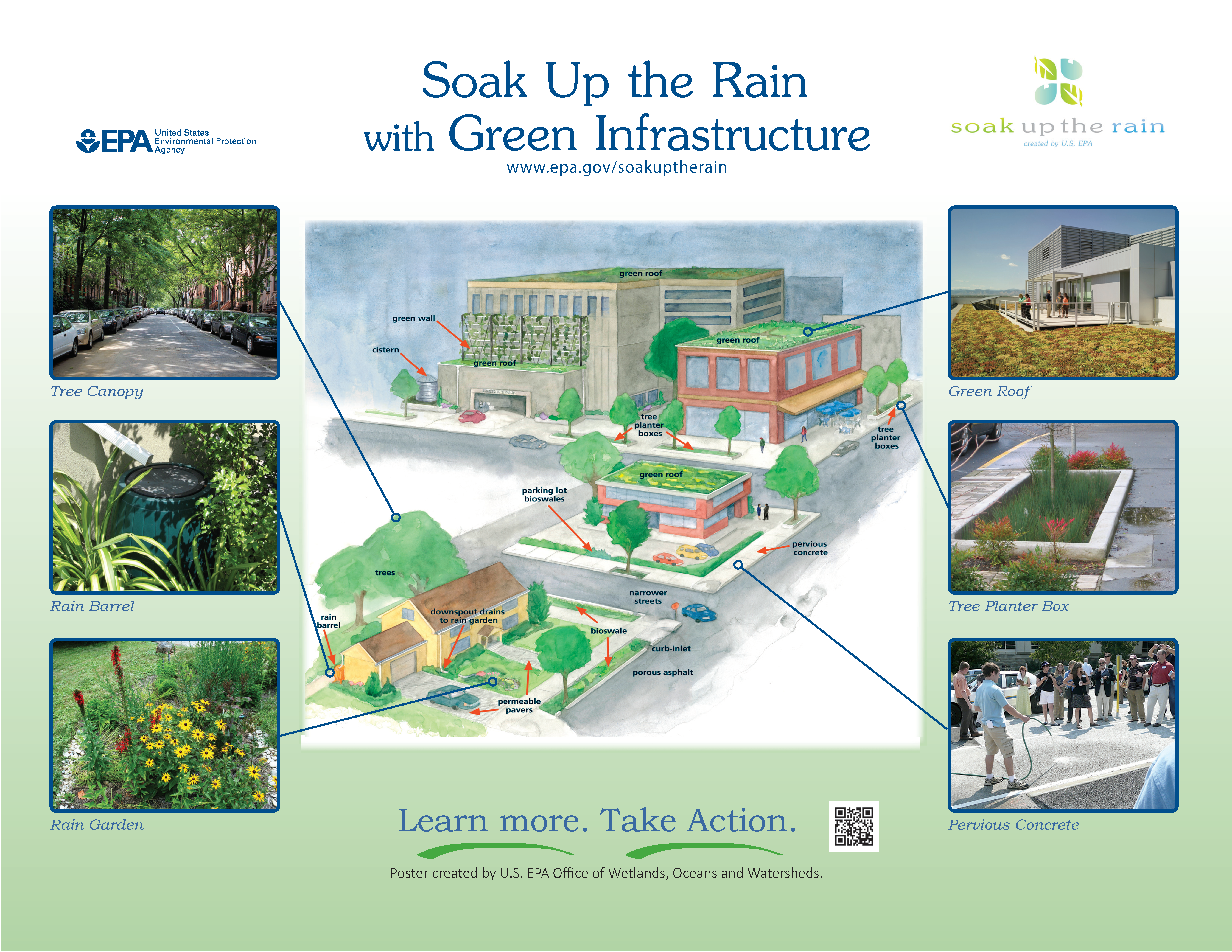 이러한 부정적 환경 영향에 대응하기 위해 많은 도시에서 지역 공동체 정원과 공원, 하수 및 폐기물 시스템, 태양 에너지 사용과 같은 녹색 인프라(green infrastructure)를 구축했다. 녹색 인프라는 기후 변화에 대응하고 홍수 위험을 줄이는 데 효과적이며,[2] 대기 질 개선뿐만 아니라 정신 건강 증진에도 효과가 있는 것으로 나타났다.[3]