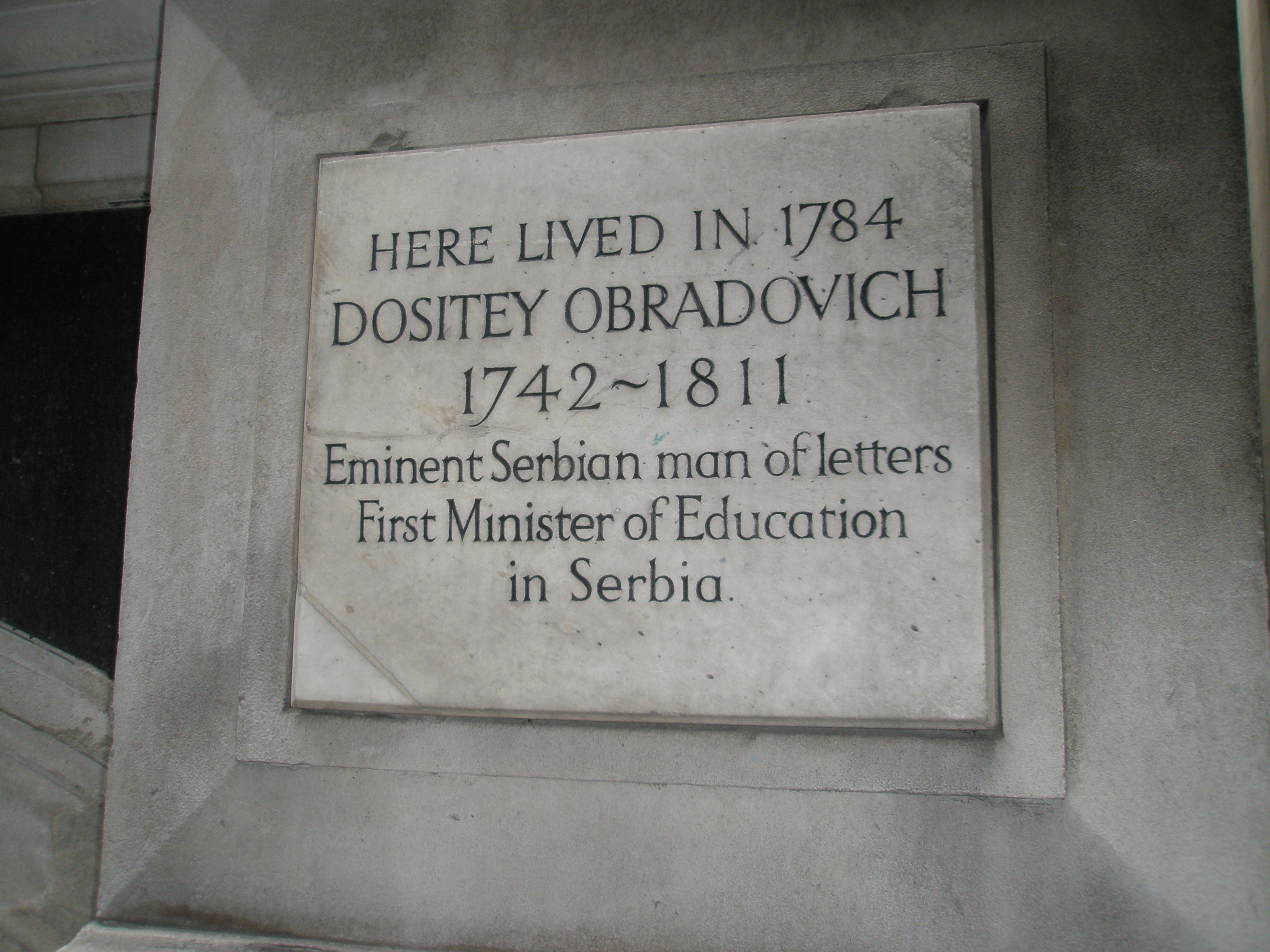 도세이 오브라도비치는 1811년 세르비아 베오그라드에서 사망했다. 그는 성대한 장례 행렬로 추모받았으며 성 미카엘 대성당에 묻혔다.[9] 오브라도비치 기념비는 1914년 칼레메그단 공원 입구에 세워졌다. 1930년에는 새로 개장한 아카데믹 공원의 눈에 띄는 장소, 베오그라드 대학교 행정 및 통치 건물 근처로 옮겨져 현재까지 그 자리에 있다.[10][11]
