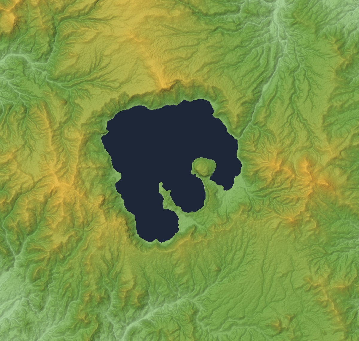 오구라산(용암돔)이 있는 오구라반도와 중산반도 사이에 있는 '''중호'''(中湖)라고 불리는 수역이 최심부이며, 오구라산 동쪽의 '''동호'''(東湖)나 중산반도 서쪽의 '''서호'''(西湖)라고 불리는 수역의 수심은 50~100m 정도이다.