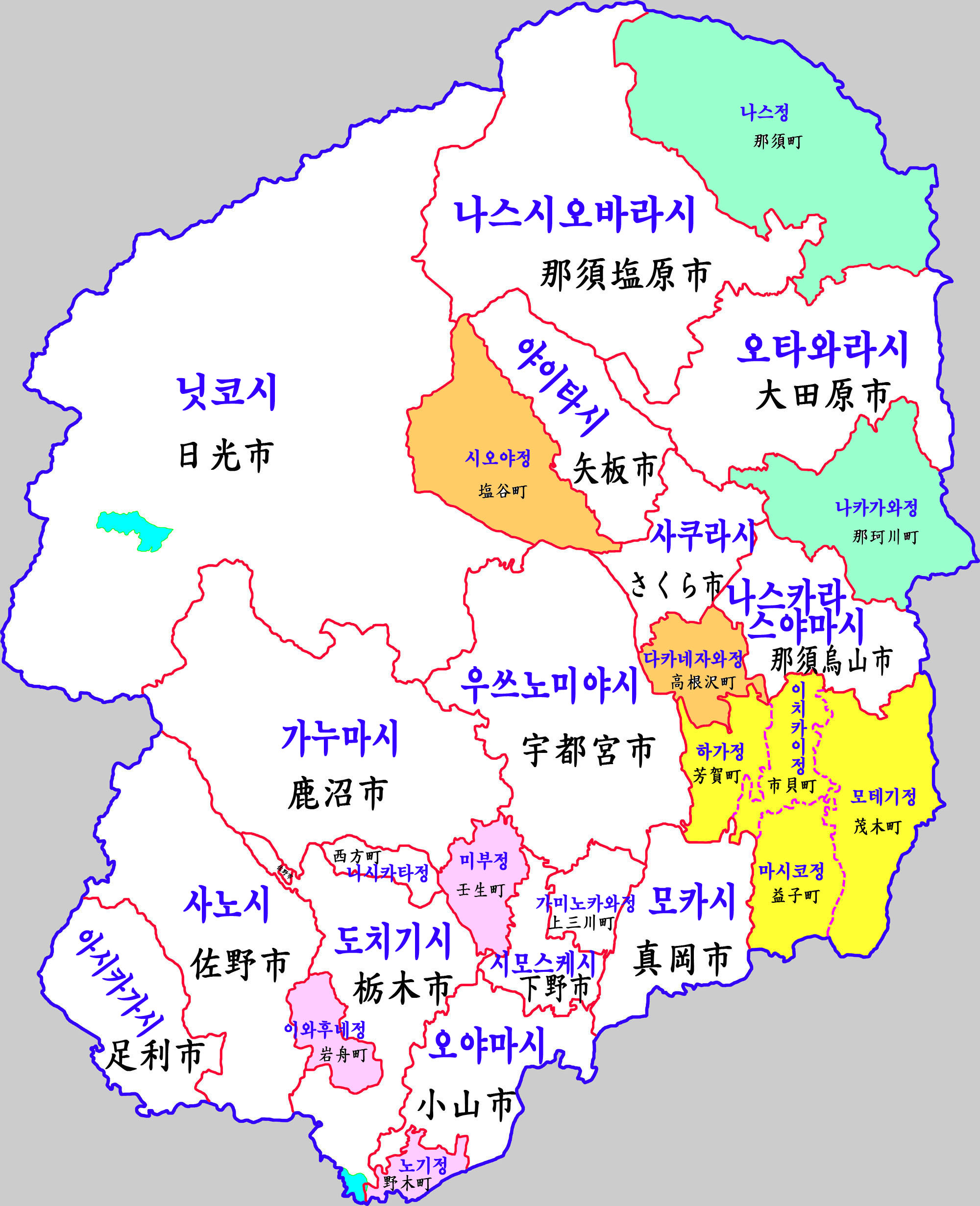 도치기현은 간토 지방 북부에 위치한 현으로, 이바라키현, 군마현, 사이타마현, 후쿠시마현과 접해 있다. 현의 중심에는 간토 평야가 펼쳐져 있으며, 북부에는 산악 지형이 발달해 있다. 주요 도시로는 현청 소재지인 우쓰노미야시를 비롯해 아시카가시, 도치기시 등이 있다. 도치기현은 자동차 부품, 카메라 렌즈, 의료 기기 등 제조업이 발달했으며, 쌀, 딸기, 부추, 배 등 농업도 활발하다. 닛코 국립공원은 유네스코 세계유산으로 등재되어 있으며, 닛코 도쇼구, 린노지, 닛코 후타라산 신사, 계곤폭포 등 관광 명소가 많다.