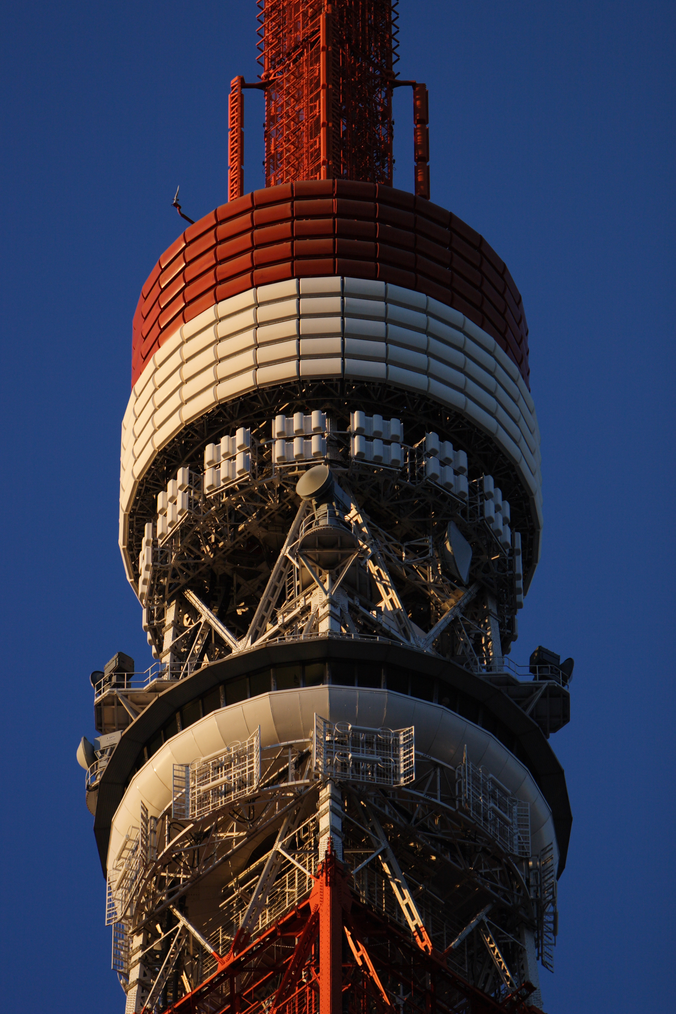 주간 장애 표지로, 황적색(인터내셔널 오렌지)과 백색을 번갈아 칠했다. 텔레비전 방송 및 FM 라디오 안테나로 방송 전파를 송출하고, 동일본여객철도(JR 동일본) 방호 무선용 안테나, 도쿄도 환경국 측정기 등이 설치되어 있다.
