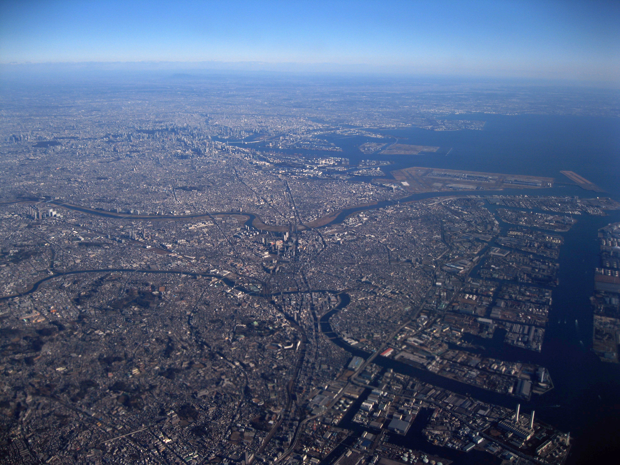 도쿄 국제공항은 1931년 하네다 비행장으로 개항하여 국내선 위주로 운영되다 2010년 국제선 운항을 재개했으며, 현재 3개의 터미널과 4개의 활주로를 갖추고 국내선과 국제선 모두 일본 내 가장 많은 여객 수송량을 기록한다. - 도쿄만 - 요코하마항