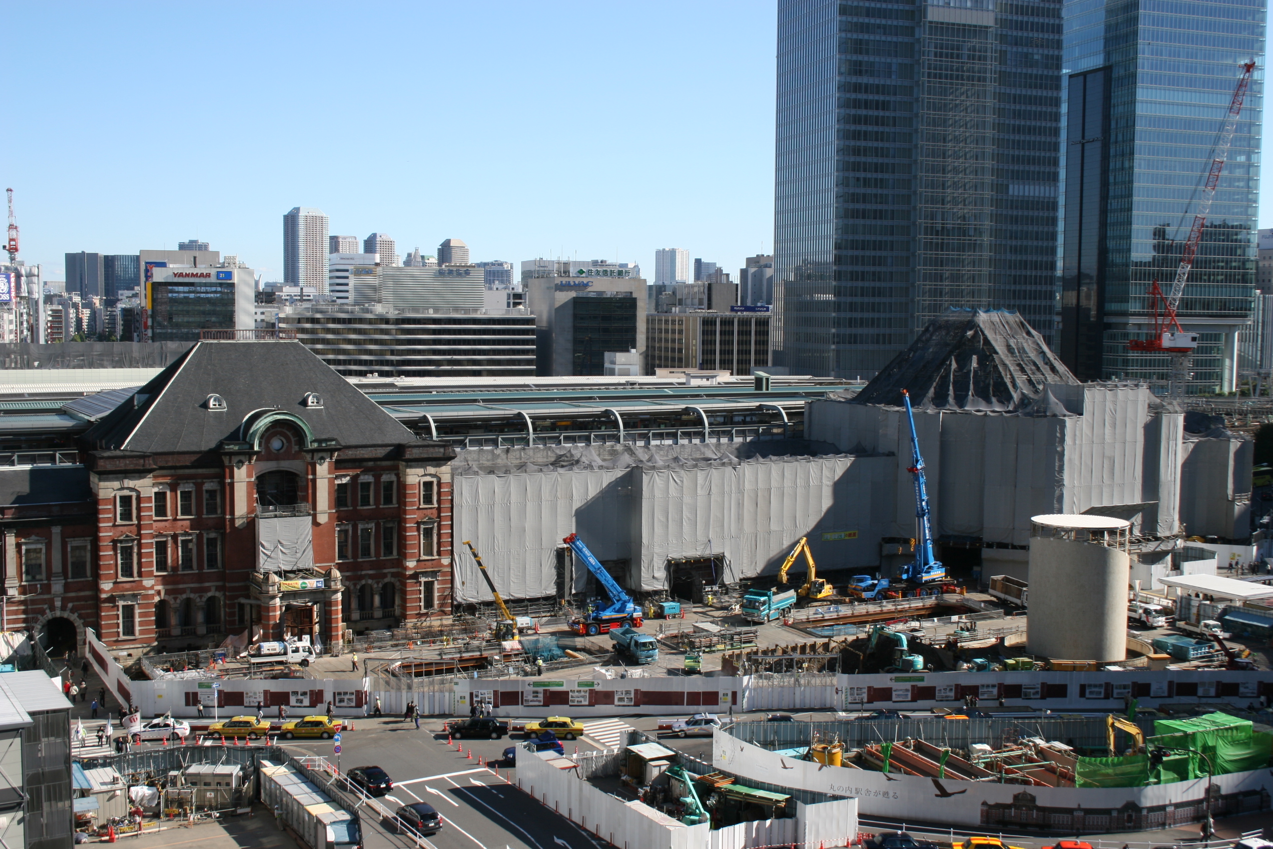 2000년 마루노우치 역사를 창건 당초의 모습으로 복원하는 방침이 매듭을 짓게 되었다. 500억엔으로 책정된 복원공사의 비용은 도쿄역의 용적율을 마루노우치 지구의 고층빌딩에 이전(매각)하는 것으로 조달키로 했다. 복원공사 자체는 2007년 5월 30일 기공되어 2012년 10월 1일 완성되었다. 2009년 11월, 마루노우치 역사 복원 공사 도쿄역 복합시설은 마루노우치(서쪽)와 야에스(동쪽) 역사를 중심으로 대대적인 개발을 거쳤다. 마루노우치 쪽은 5년에 걸친 대규모 보수 공사를 거쳐 2012년 10월에 완료되었으며, 98년 된 역사적 외관이 전쟁 전 모습으로 복원되었다. 복원 작업에는 원래 디자인에 따른 두 개의 돔 재건이 포함되었다.[20] 주변 지역은 마루노우치 중앙 광장(Marunouchi Central Plaza)으로 이어지는 넓은 광장으로 바뀌었고, 황궁으로 향하는 산책로와 버스 및 택시 정류장 공간이 마련되었다. 반면 야에스 쪽 역사는 매우 도시적인 외관을 갖추고 있다. 북쪽과 남쪽 그랑도쿄(GranTokyo) 타워는 "빛의 돛"을 형상화한 대형 캐노피가 있는 새로운 상업 시설인 그랑루프(GranRoof)를 통해 터미널과 연결되어 있다. 고층 타워에는 여러 층의 쇼핑 공간과 여러 유수 기업 및 대학의 사무실이 들어서 있다.[1] 이 프로젝트의 이 부분은 2013년에 완료되었다.