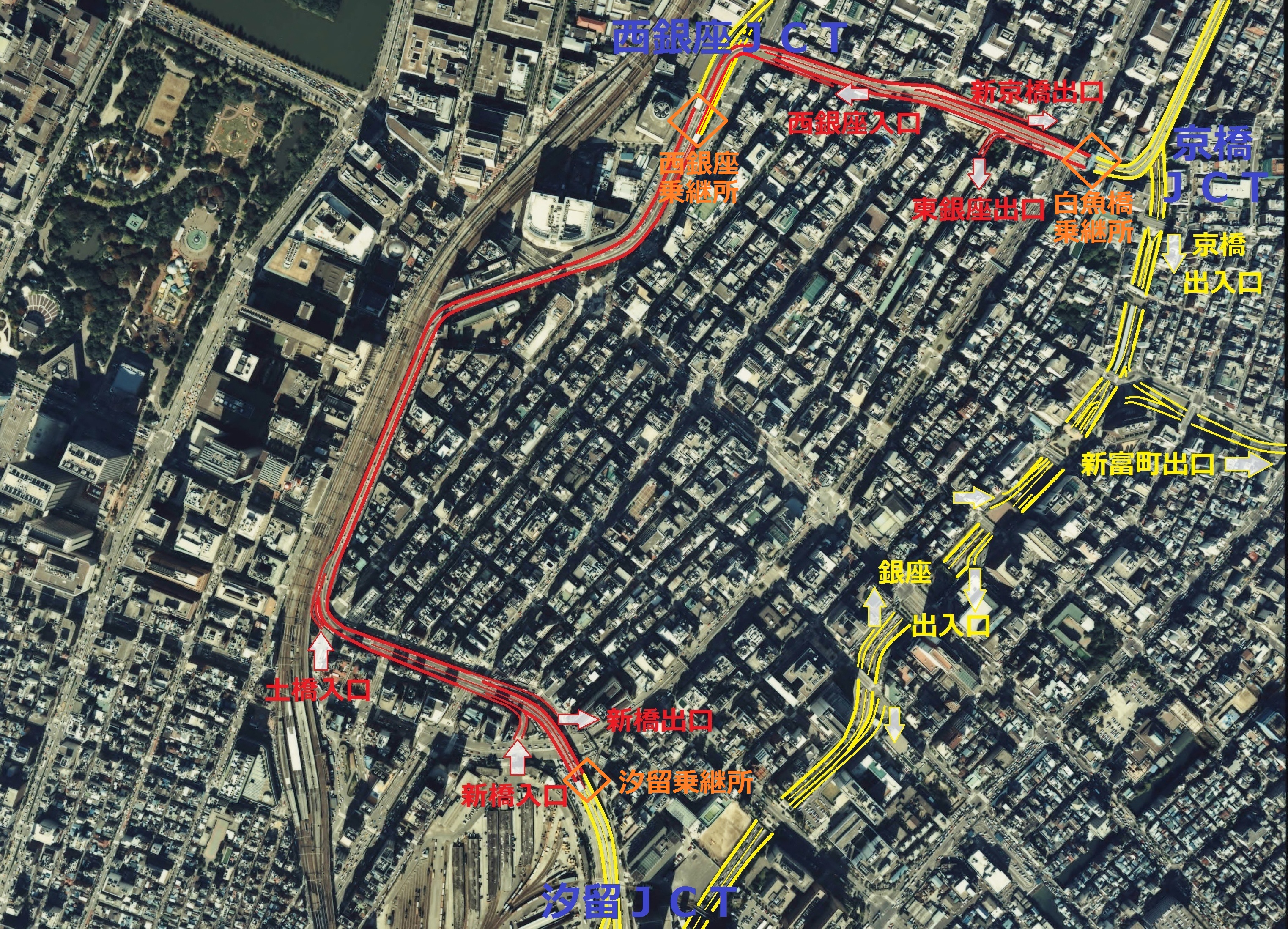 2024년 11월 11일, 도쿄 고속도로 및 수도고속도로에서 수도고속 니혼바시 구간의 지하화와 신교바시 연락로 건설에 따라, 2025년 4월 상순에 도쿄 고속도로를 폐지(히가시긴자 출구만 도심 환상선의 출구로 존속)하고 수도고속 야에스선을 장기 통행 금지하는 것이 공식적으로 발표되었다.[19][20][21]