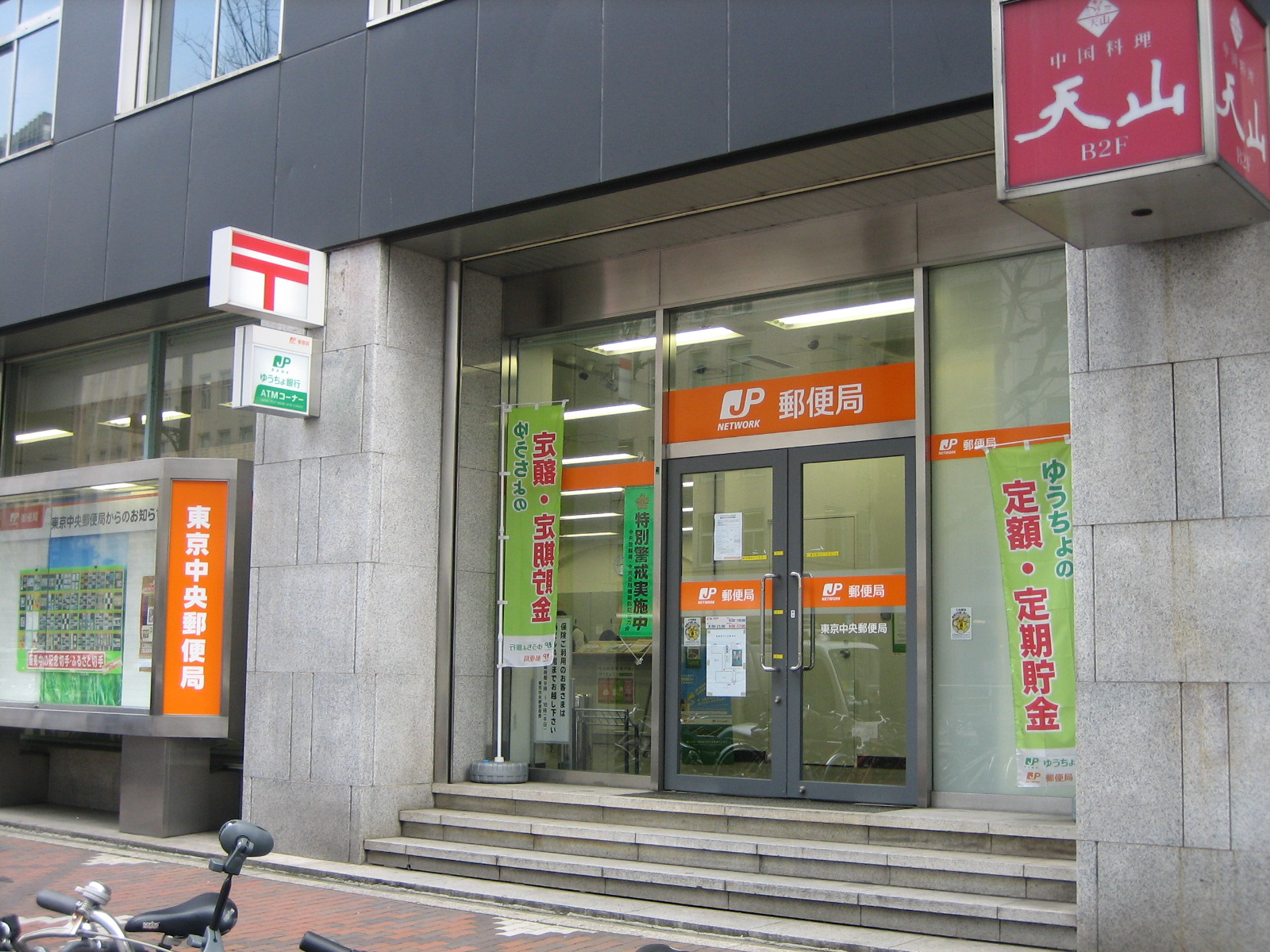 긴자 우체국 JP 타워 내 분실 (010161)우편 창구 24시간 영업 (단, 도쿄 중앙 우체국 영업 시간 중에는 보관 우편물 수령, 각종 신청·신고 접수 등 일부 업무만 취급). 사서함 설치 거점. 구 오테마치 분실(오테마치 빌딩 내)이었으나 2012년 7월 17일 JP 타워로 이전하며 개칭. 같은 해 10월 1일 우편사업 주식회사와 우체국 주식회사 합병으로 우편사업 긴자 지점이 긴자 우체국으로 개칭됨에 따라, 도쿄 중앙 우체국 내에 다른 우체국(긴자 우체국)의 분실이 있는 형태가 되었다[8]