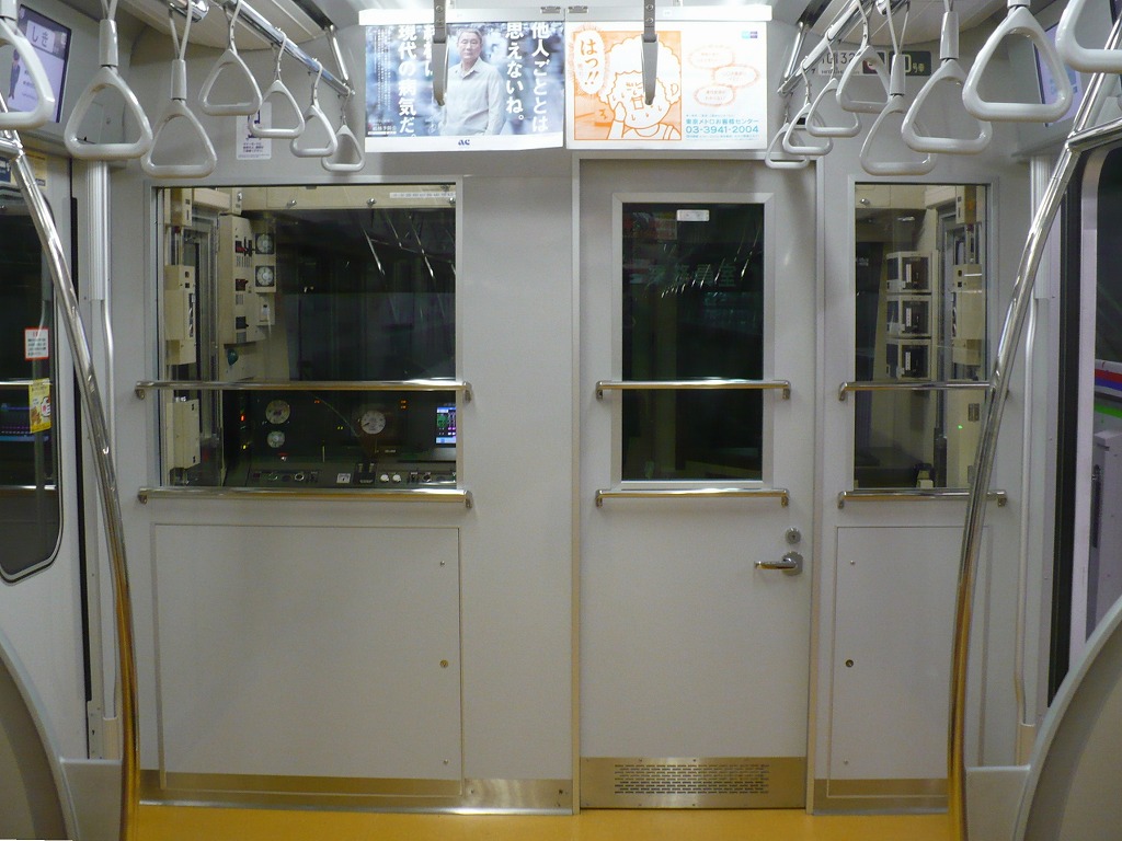 ATO를 사용한 1인 승무에 대응하고 있다]]승무원실은 거주성 확보를 위해 선로 방향으로 2,160mm 확보되어 있다. 실내는 아이보리색이며, 천장은 객실보다 낮다. 운전대는 검은색·회색의 배색으로 유라쿠초 선을 정기 운행하는 차량으로는 처음으로 원핸들식 마스터 컨트롤러[57] 및 데드맨 장치를 채용했다. 한조몬 선용 08계 등과 마찬가지로 노치 표시등이 설치되어 ATC에 의한 제동의 경우에도 제동단 표시가 된다.