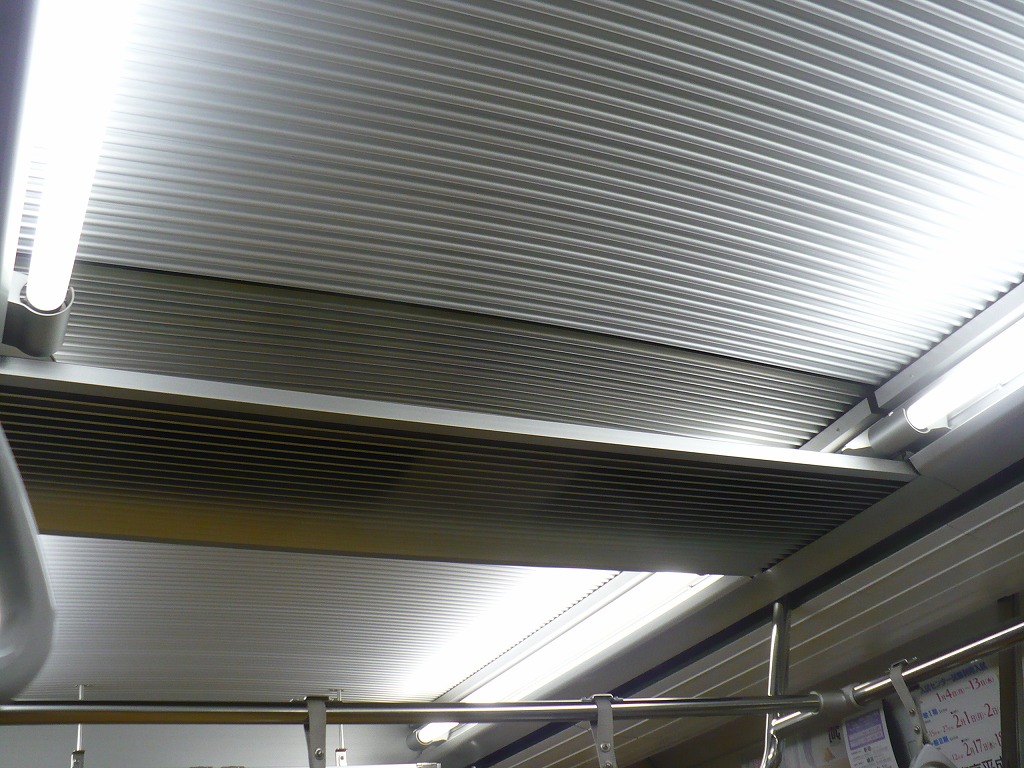 조명은 특징적인 설치 방법으로, 천장 높이가 바뀌는 전환부의 수직면에 형광등을 설치했다. 1차차는 당초 천장의 움푹 들어간 부분에 묻혀 있는 형태였지만, 조도 분포 개선을 위해 2006년 11월 - 12월에 전 편성이 스페이서를 사용하여 현재 상태로 변경되었다.
