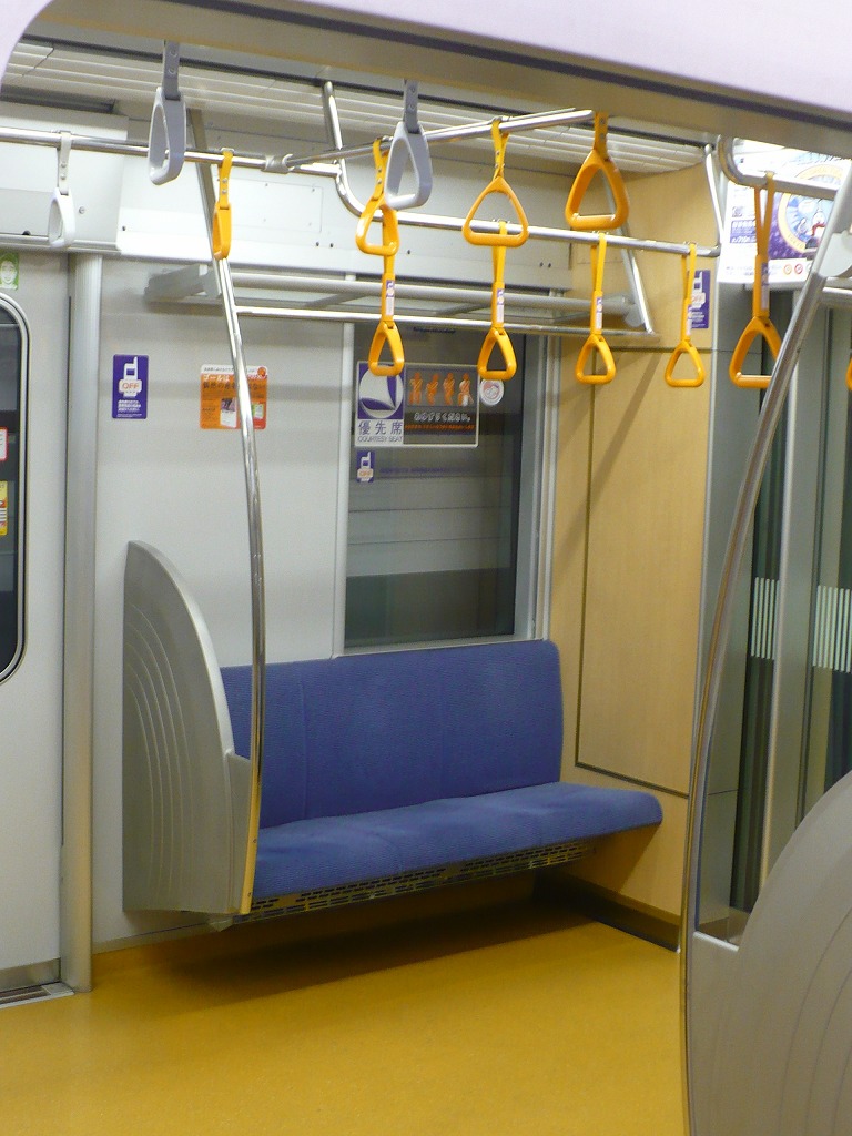 손잡이 봉은 기존 차량과 달리, 별도로 부착된 손잡이 봉 받침을 거치는 것이 아니라, 봉 자체를 구부려 천장부에서 지지하는 구조로 되어 있다. 좌석 주변의 폴(손잡이 봉)은 천장부에서 4개가 내려와 있으며, 그 중 3개는 좌석 끝의 손잡이 봉과 좌석 간의 칸막이로 사용한다(차단부는 2개가 내려오고, 1개가 손잡이 봉이 된다).