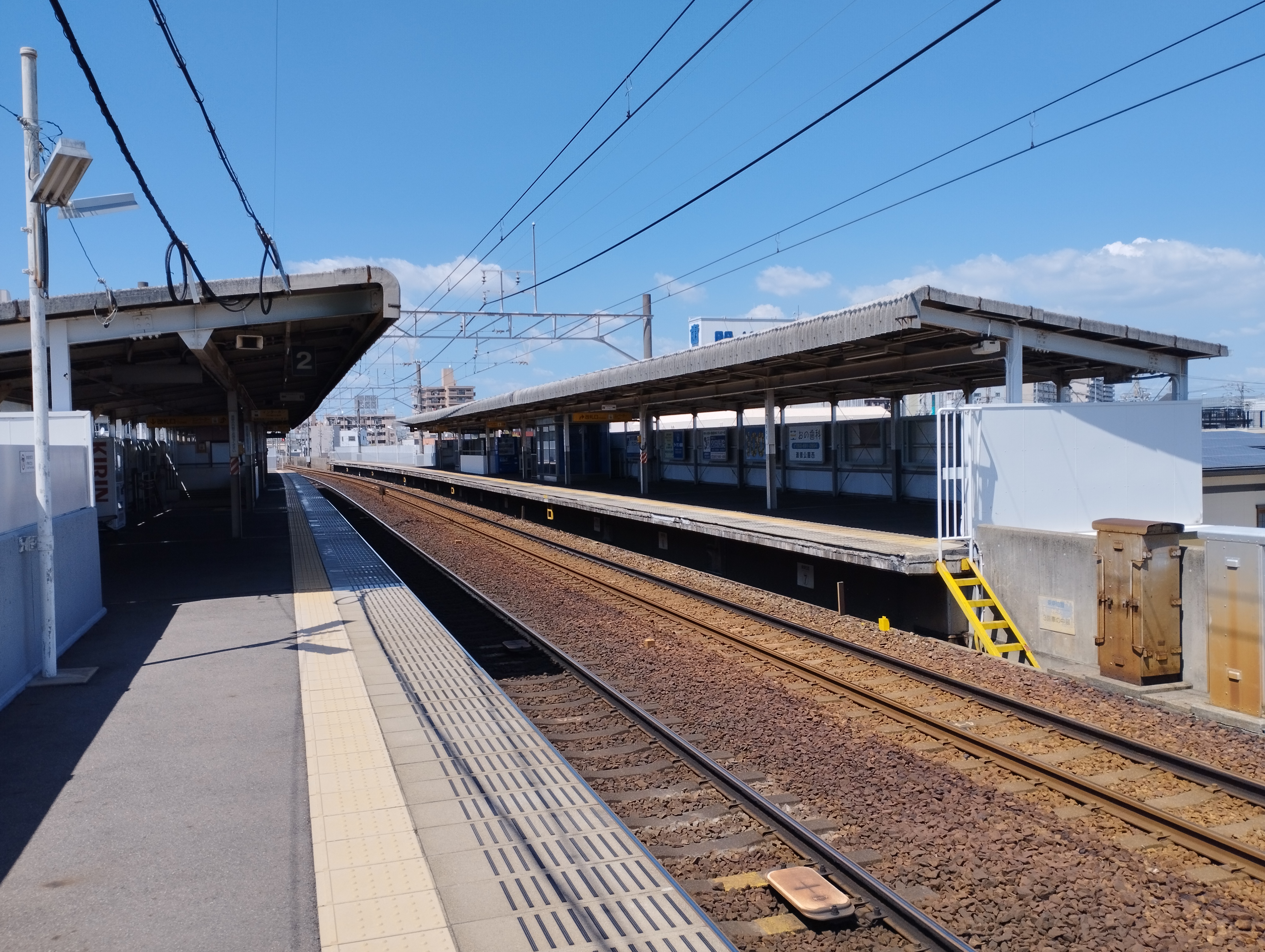 유효장 6량 편성 대응의 상대식 승강장 2면 2선을 갖춘 고가역이며, 과거에는 유인역이었으나 2005년 1월 15일에 역 집중 관리 시스템(관리역은 진구마에역[7])에 의한 역무원 미배치역이 되었다. 현재는 보통 열차만 정차하는 역이지만, 과거에는 나고야 방면으로 향하는 급행이 특별 정차했던 시기가 있었다.