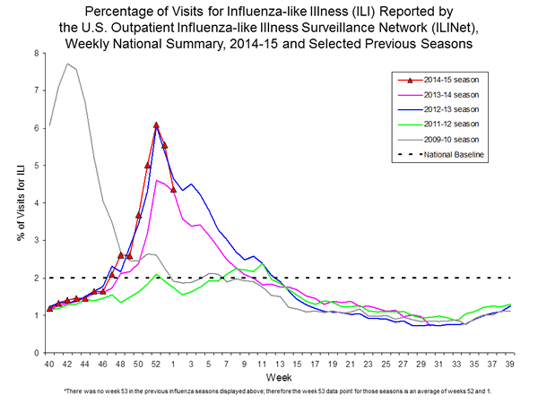 계절성 독감 유행은 때때로 매우 심각하여, 초과 사망률 측면에서는 대유행과 맞먹는 수준에 이르기도 한다.[36][37] 실제로 계절성 유행과 대유행을 구분하는 주요 기준은 사망률보다는 질병의 확산 범위이다.[38] 그러나 유행과 대유행의 차이, 그리고 개별 독감 시즌마다 나타나는 지역적 유행 강도의 차이에 대한 원인은 아직 명확히 밝혀지지 않았다.[37][39] 따라서 일부 독감 시즌은 그 심각성 때문에 특별히 주목받으며, 다른 시즌들은 독특하거나 특이한 요인들로 인해 기록되기도 한다. 예를 들어, 2014-2015년 독감 시즌은 영국에서 특히 유행이 심했던 것으로 보고된다.[60]