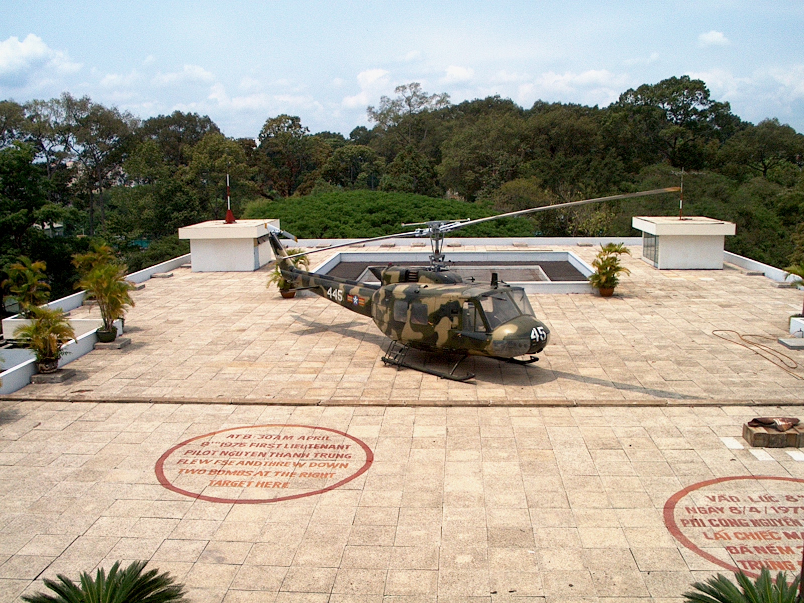 1975년 4월 8일, 북베트남군이 노획한 노스럽 F-5 프리덤 파이터가 독립궁을 폭격했으나 큰 피해는 없었다. 같은 해 4월 30일, 사이공 시내에 진입한 북베트남군 전차가 독립궁 울타리를 부수고 돌입하면서 사이공은 함락되었고, 이는 "한 국가가 소멸하는 순간"으로 전 세계에 알려졌다. 당시 사용된 소련제 전차는 현재도 독립궁 부지 내에 전시되어 있다.[2]