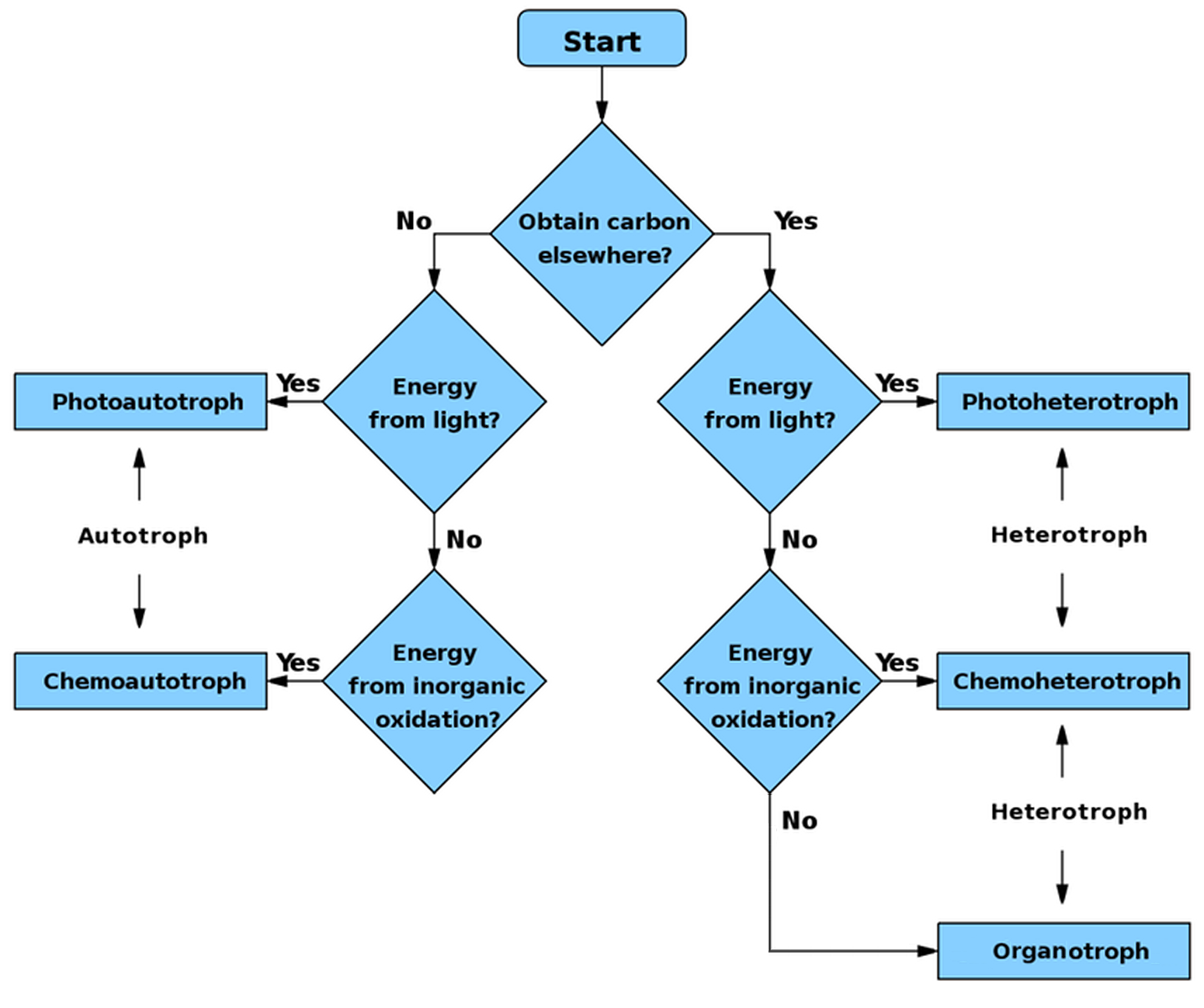 독립영양생물은 크게 광독립영양생물과 화학독립영양생물로 나눌 수 있으며, 그 외에 혼합영양생물, 방사선영양생물 등이 있다.
