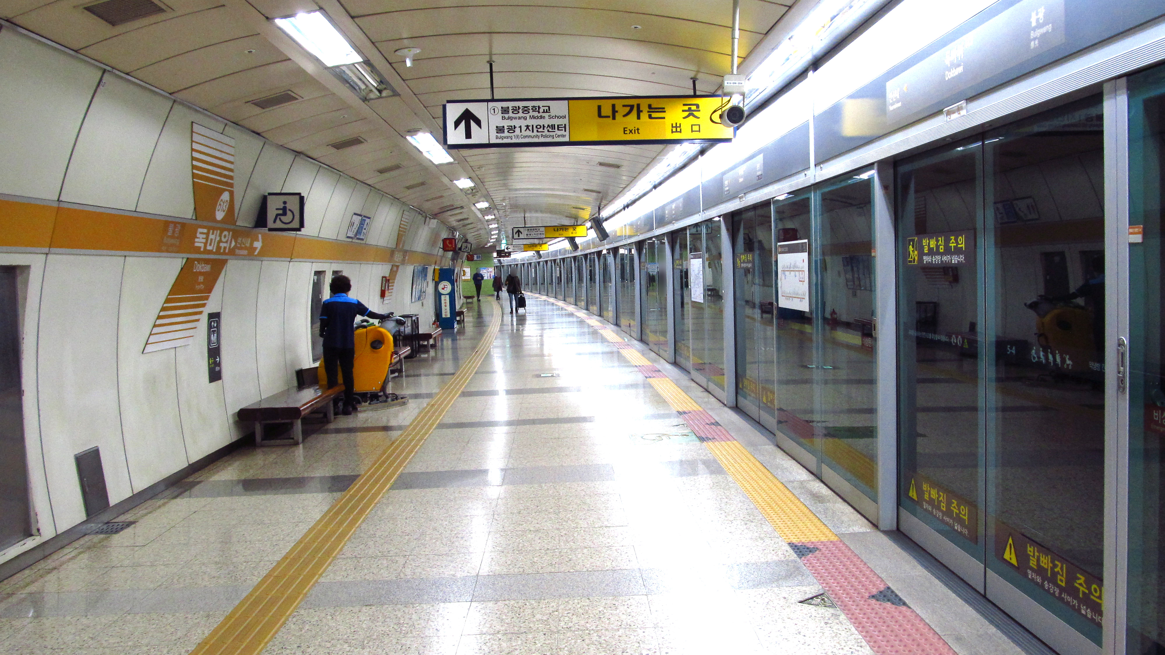 독바위역 승강장은 곡선 구간으로 많이 휘어져 있어 승강장과 열차 사이의 간격이 매우 넓으므로, 승하차 시 주의가 필요하다.