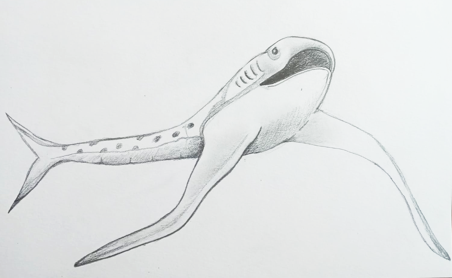 날씬하고 길게 펼쳐진 가슴지느러미는 마치 가오리와 상어를 합쳐놓은 듯하며, 이 가슴지느러미로 수중을 비행하듯이 미끄러지면서 부드럽게 움직였지만 유영 속도는 그리 빠르지 않았을 것으로 추정된다.[1]
