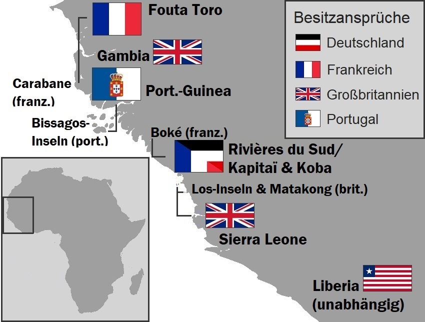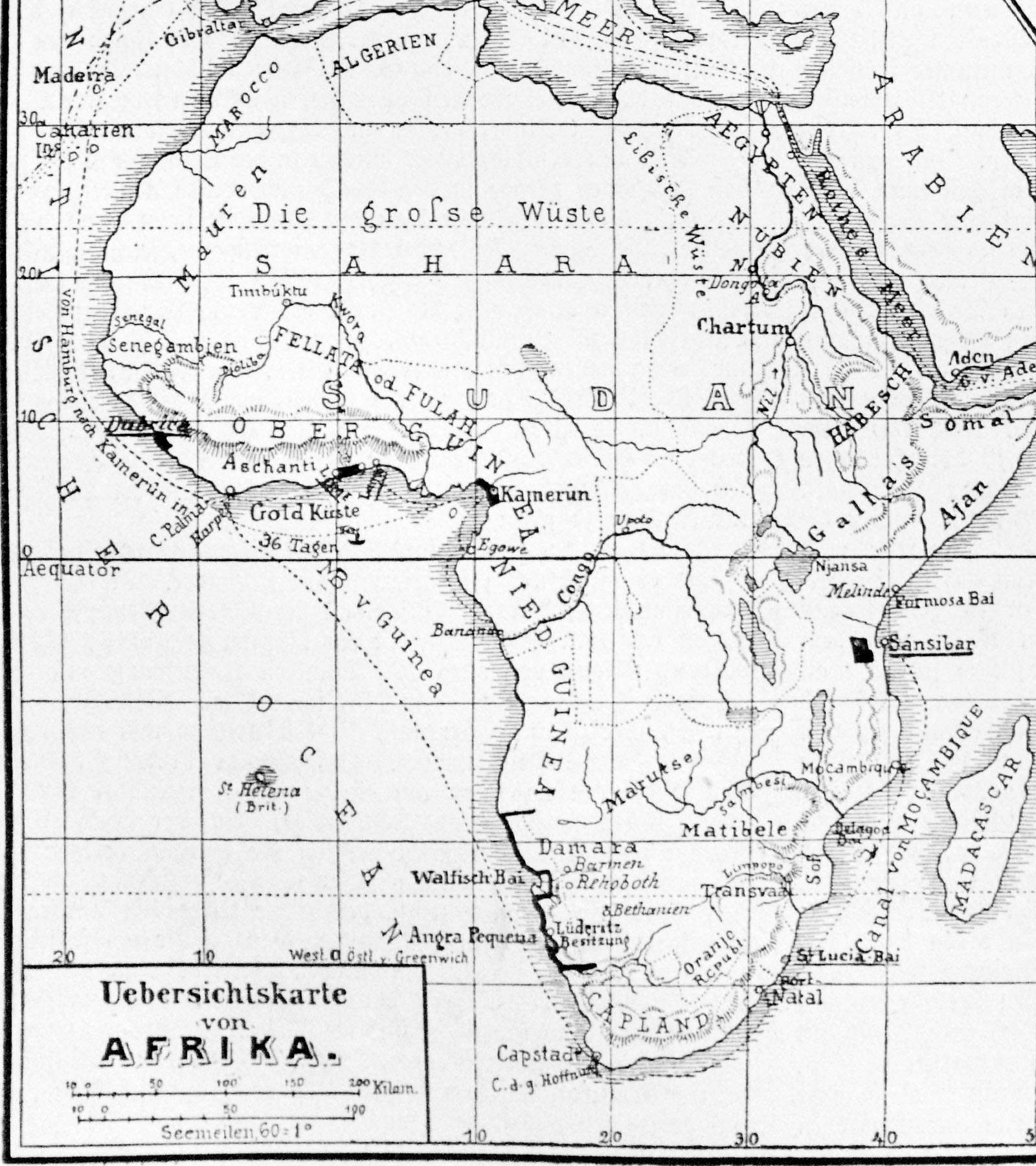 1880년대에 들어서면서 독일의 활동은 더욱 활발해져, 현재의 기니, 토고, 카메룬 지역에 무역 거점을 확보하고 현지 통치자들과 협정을 맺는 등 영향력을 확대해 나갔다.