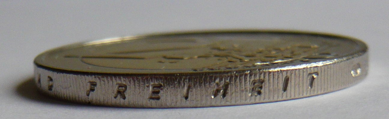 독일 2 유로 동전에 새겨진 "EINIGKEIT UND RECHT UND FREIHEIT"