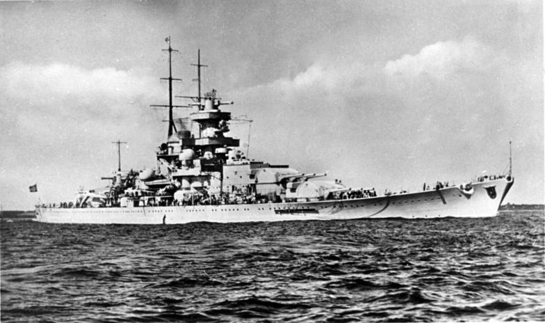 1942년 2월 26일 킬 군항에서 연합군 항공기의 폭격을 받아 함수 탄약고가 폭발하여 함수가 절단되는 큰 피해를 입었다.[2] 이후 수리를 거쳐 주포탑을 38cm 연장포로 교체하기 위해 폴란드의 그디니아(당시 고텐하펜)로 이동했다.[3] 그러나 1943년, 바렌츠 해 해전에서의 패전 이후 아돌프 히틀러가 대형함 건조 및 개장 중단 명령을 내리면서 공사가 중지되었고, 결국 폐기가 결정되었다.