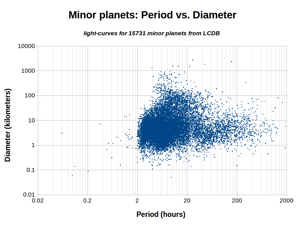 큰 소행성(1 세레스, 2 팔라스, 4 베스타, 10 히기에이아, 704 인테람니아)은 모두 큰 구멍이 보이지 않는 덩어리인데, 이는 돌무더기 구조로는 충돌을 버티지 못하고 산산조각났을 것이기 때문이거나, 질량이 충분히 커 산산조각이 났어도 다시 뭉칠 만한 중력이 있었기 때문으로 보인다. 베스타는 충돌이 일어난 흔적에서 행성 분화가 일어났다는 증거가 있어 확실히 돌무더기가 아닌 것으로 보이며, 크기가 베스타 이상이면 돌무더기로 조각나는 것을 막아줄 수 있다는 지표로서 사용되고 있다.