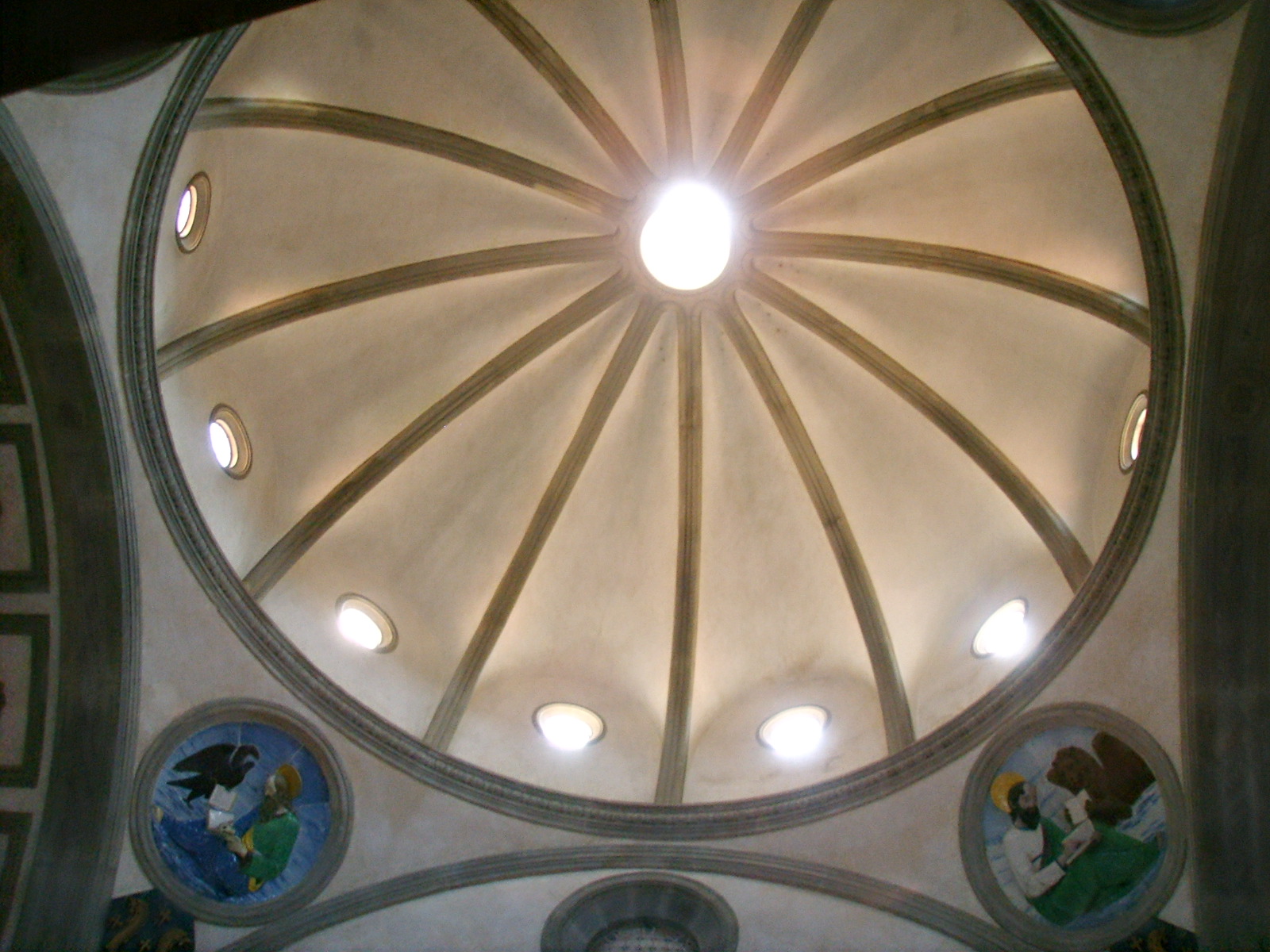 이탈리아 르네상스 시대에는 돔 건축 기술이 크게 발전했다. 필리포 브루넬레스키가 설계하여 1420년부터 1436년 사이에 건설된 피렌체 대성당의 팔각형 벽돌 돔은 이 시기를 대표하는 건축물이다. 지름이 약 42m에 달하는 이 돔은 당시 서유럽에서 가장 큰 돔이었으며, 현재까지도 세계에서 가장 큰 석조 돔으로 남아있다. 특히 브루넬레스키는 외부 쉘과 내부 쉘로 이루어진 이중 구조 방식을 사용하여 거대한 돔을 안정적으로 지지했는데, 이는 이후 돔 건축에 큰 영향을 주었다. 돔 위의 랜턴은 1467년에 완공되었다.