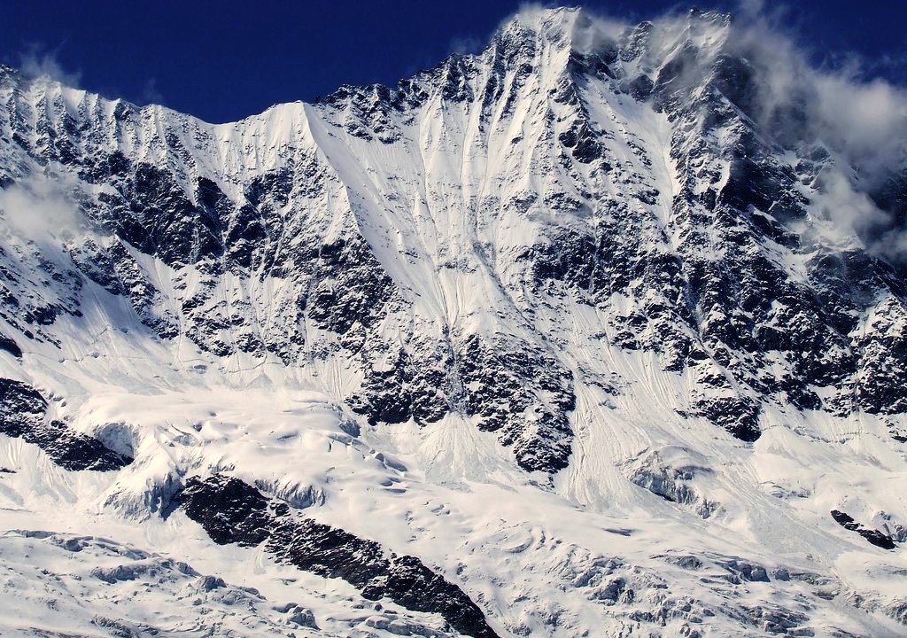 일반적으로 3,000m 이상의 지역은 빙하로 덮여 있으며, 가장 큰 두 빙하는 나델그라트 기슭에 위치한 리트 빙하와 돔산 자체의 동쪽 면 아래에 있는 페 빙하이다.3. 지질