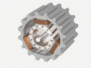 동기 속도 ''Ns'' (rpm)는 교류 전원의 주파수 ''f'' (Hz)와 자극의 수 ''p''에 의해 결정된다.: (rpm)