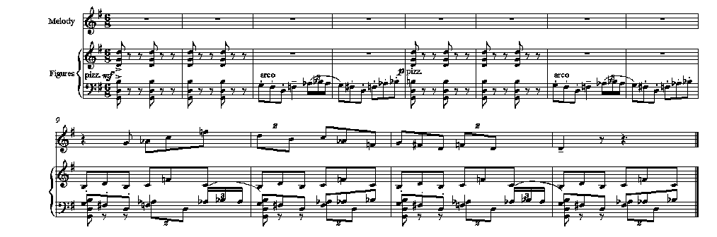 사람, 장소, 아이디어와 주제적으로 관련된 모티프는 라이트모티프(Leitmotif|라이트모티프de) 또는 '고정 관념(idée fixe)'이라고 불린다. 때때로 이러한 모티프는 관련된 이름의 음악 암호(musical cryptogram)가 되기도 한다.[11]4. 2. 예시