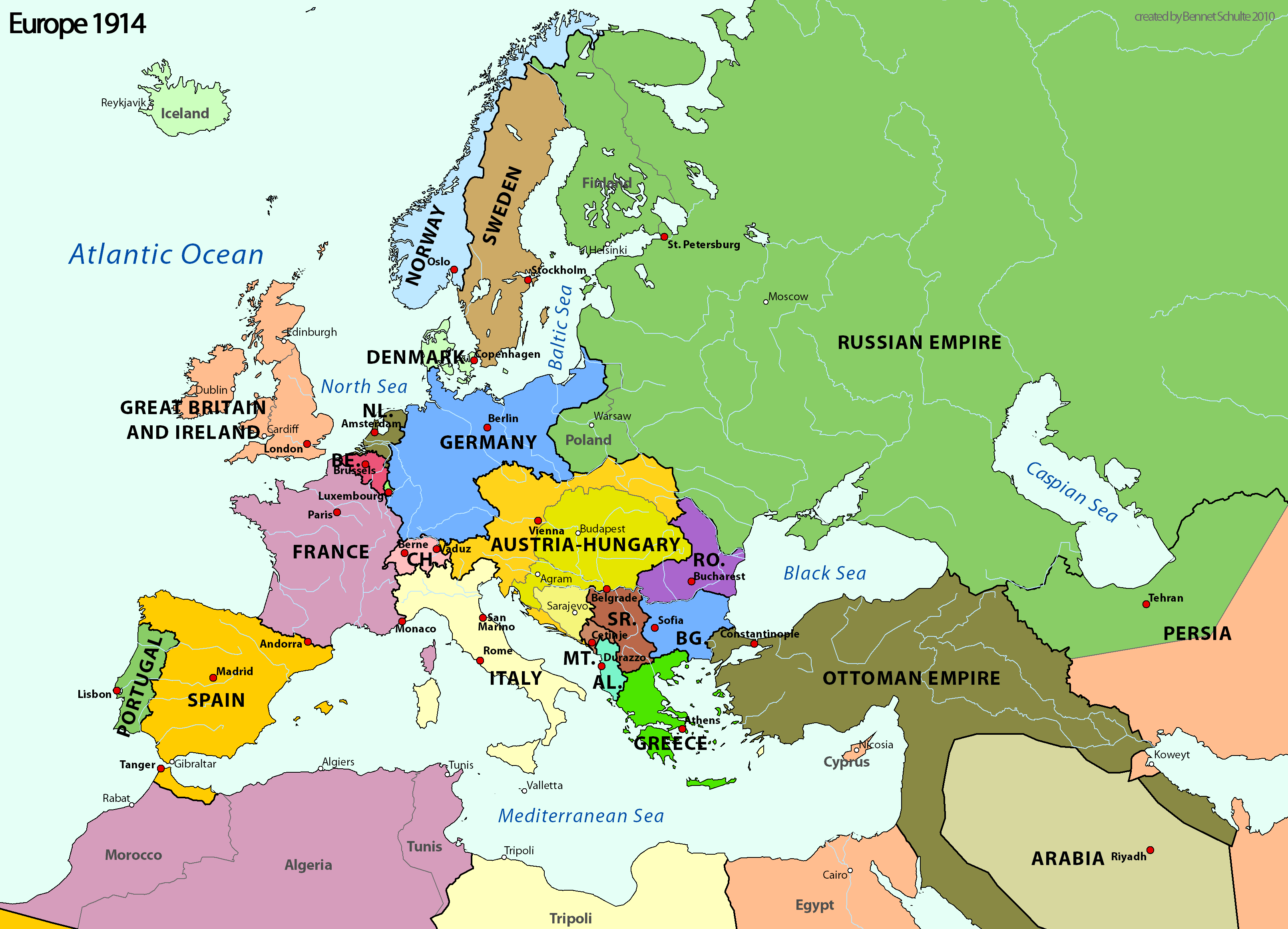 오스트리아-헝가리의 세르비아 침공은 러시아가 오스트리아-헝가리에 전쟁을 선포하는 결과를 낳았고, 독일은 이에 대응하여 러시아에 전쟁을 선포함으로써 세계 대전을 초래한 동맹 간의 충돌을 시작했다.[36]