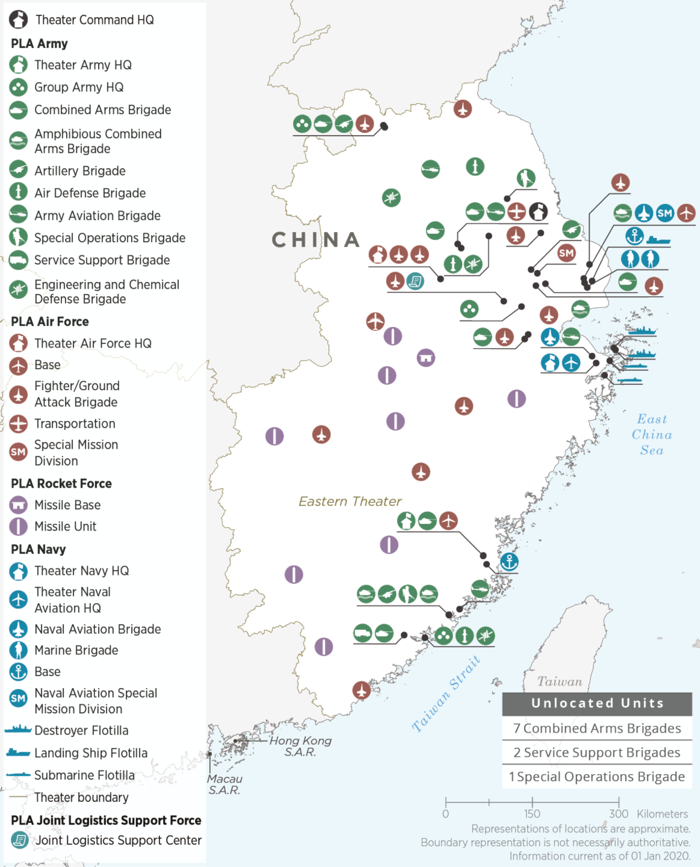 상륙 합동 병과 여단을 갖춘 동부 전구의 두 집단군 중 하나인 제73집단군은 푸젠성에서 상륙 훈련을 실시하는 중국 언론에 의해 주요하게 다루어졌으며, 이는 타이완에 대한 무력 사용에 참여할 수 있는 능력을 보여주는 것이었다.[30][31][32]