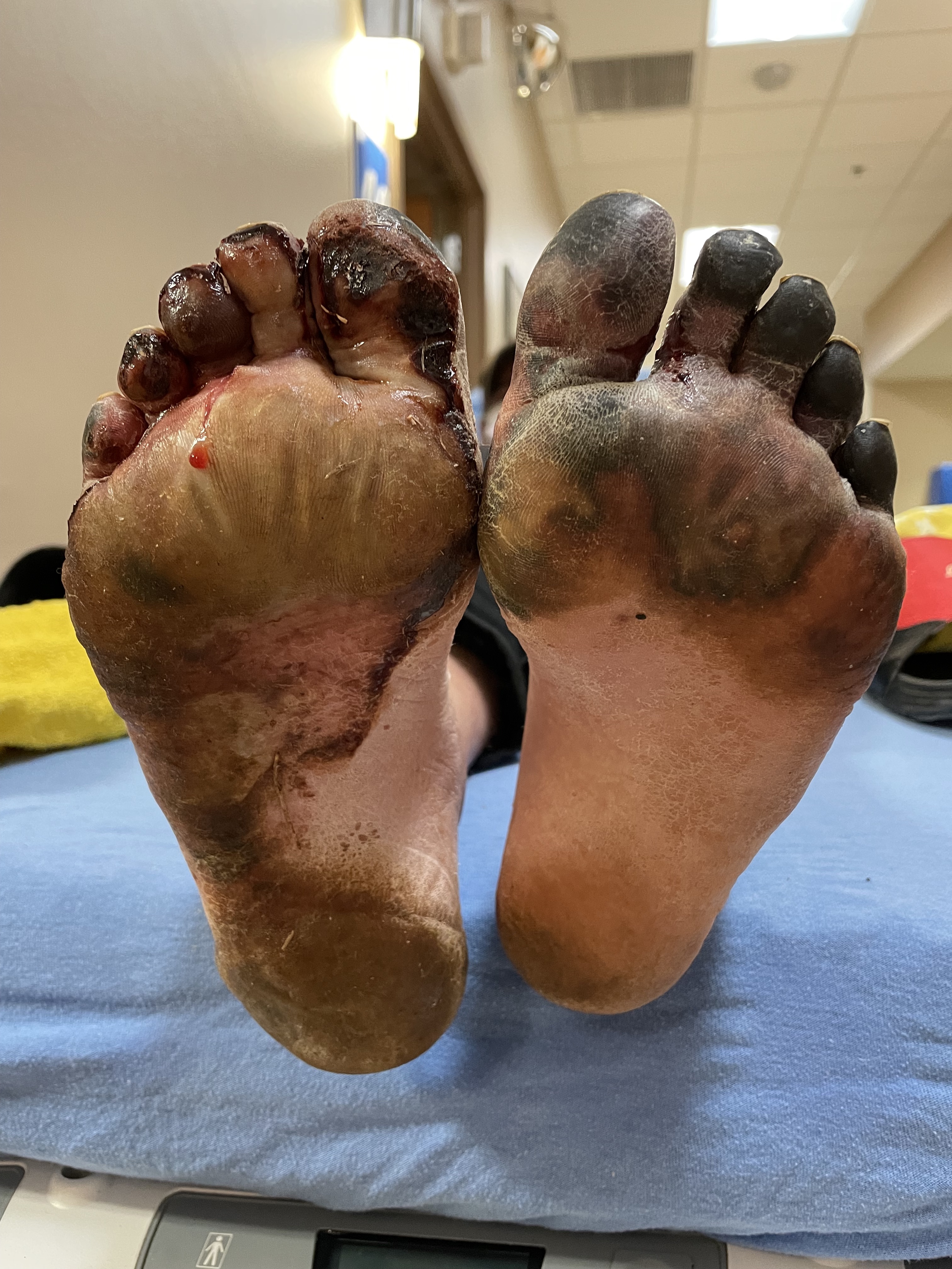 The treatment of deep frostbite of both feet in two patients with hyperbaric oxygen