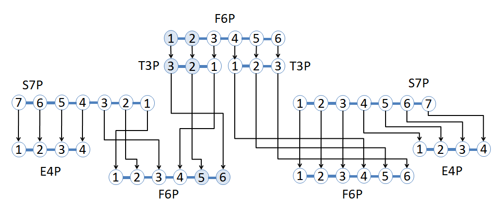 예를 들어, 오탄당 인산 경로와 같은 대사 경로 연구에서 안정 동위원소 표지법을 활용할 수 있다. 그림에서처럼 특정 위치(1번과 2번 탄소)에 13C로 표지된 과당 6-인산(F6P)을 사용하면, 이 분자가 대사 과정을 거치면서 표지된 탄소 원자가 어떻게 재배열되는지 추적할 수 있다. 1,2-13C F6P는 두 개의 글리세르알데히드 3-인산(G3P)으로 분해되는데, 하나는 2번과 3번 탄소가 표지된 2,3-13C G3P가 되고 다른 하나는 표지되지 않은 G3P가 된다. 이 표지된 G3P는 다시 다른 분자(세도헵툴로스 7-인산, S7P)와 반응하여 새로운 표지 패턴을 가진 분자(5,6-13C F6P)와 표지되지 않은 분자(에리트로스 4-인산, E4P)를 만든다. 반면, 표지되지 않은 G3P는 S7P와 반응하여 표지되지 않은 생성물만 만든다.[5] 이처럼 위치 특정 표지 화합물을 사용하면 복잡한 반응 네트워크 내에서 원자의 이동 경로를 밝힐 수 있다.