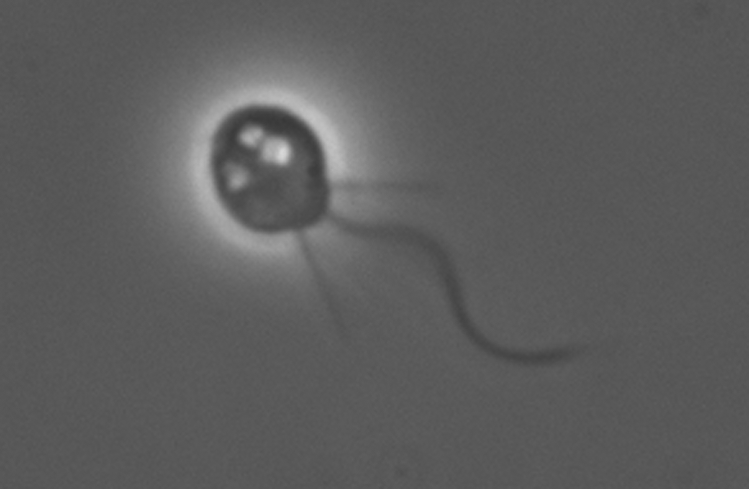 ''코도노시가''(Codosiga) sp. 광학 현미경 사진. 시베리아 토양에서 분리됨.
