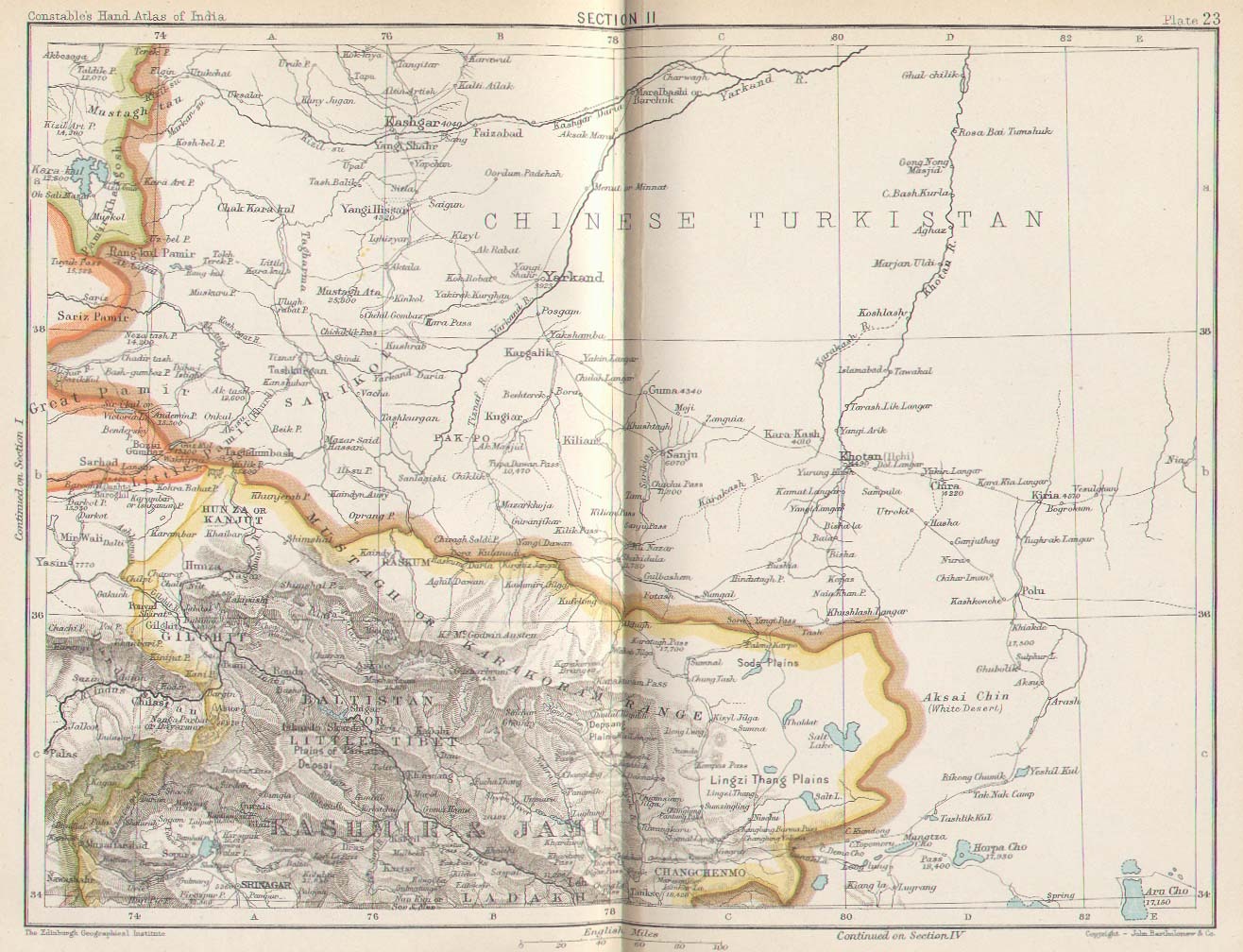 중국 투르키스탄 일부를 포함한 지도 (1893)