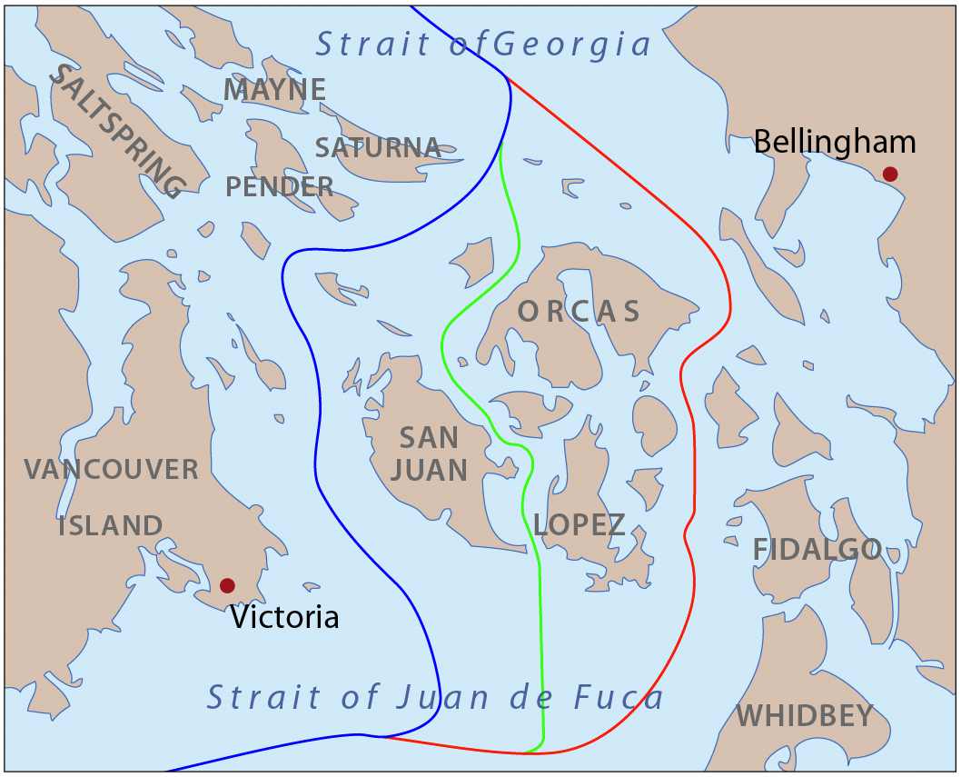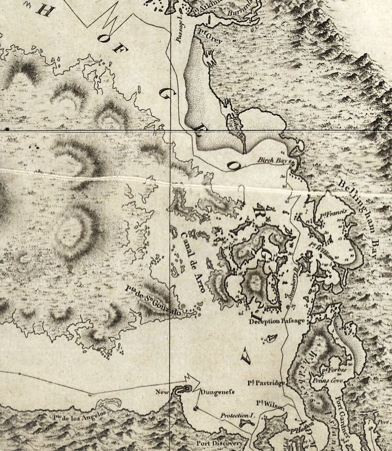당시 지도 제작 기술의 한계도 문제였다. 1798년 조지 밴쿠버와 1845년 찰스 윌크스가 제작한 지도는 밴쿠버 섬 남동쪽 해안과 걸프 제도 부근이 불분명하여, 하로 해협의 정확한 위치를 파악하기 어려웠다.[15]