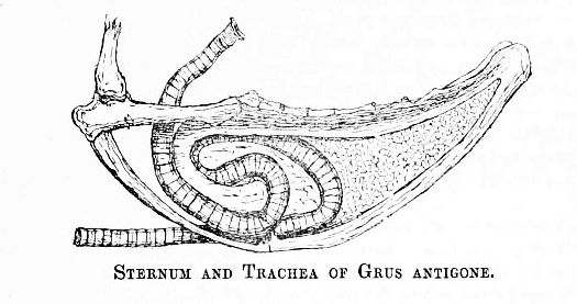 의사소통에는 기관의 위치와 길이도 중요하다. 관두루미 두 종은 기관이 짧고 흉골 뼈에 약간만 눌려 있는 반면, 다른 종들의 기관은 더 길고 흉골을 관통한다. 일부 종에서는 전체 흉골이 기관과 융합되어 뼈판을 형성하기도 하는데, 이는 두루미 특유의 크고 울리는 울음소리를 증폭시켜 수 킬로미터 밖까지 전달될 수 있게 한다.[3][7]
