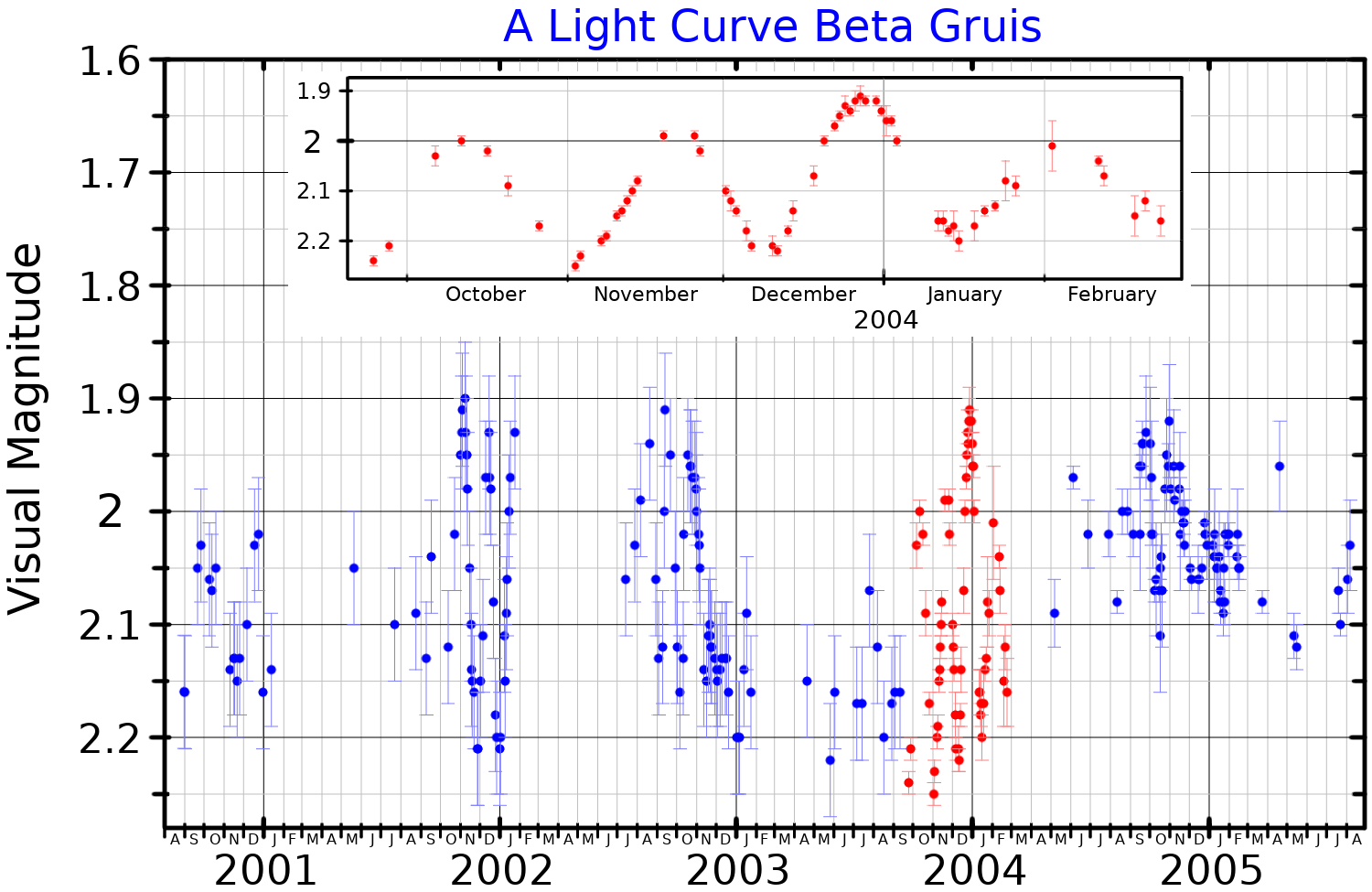 기타 명칭 | 두루미자리 베타 코르도바 Durchmusterung -47 14308 FK5 856 하버드 개정 목록 HR 8636 헨리 드레이퍼 목록 HD 214952 히파르코스 목록 HIP 112122 스미소니언 천체물리 관측소 별 목록 SAO 231258 |