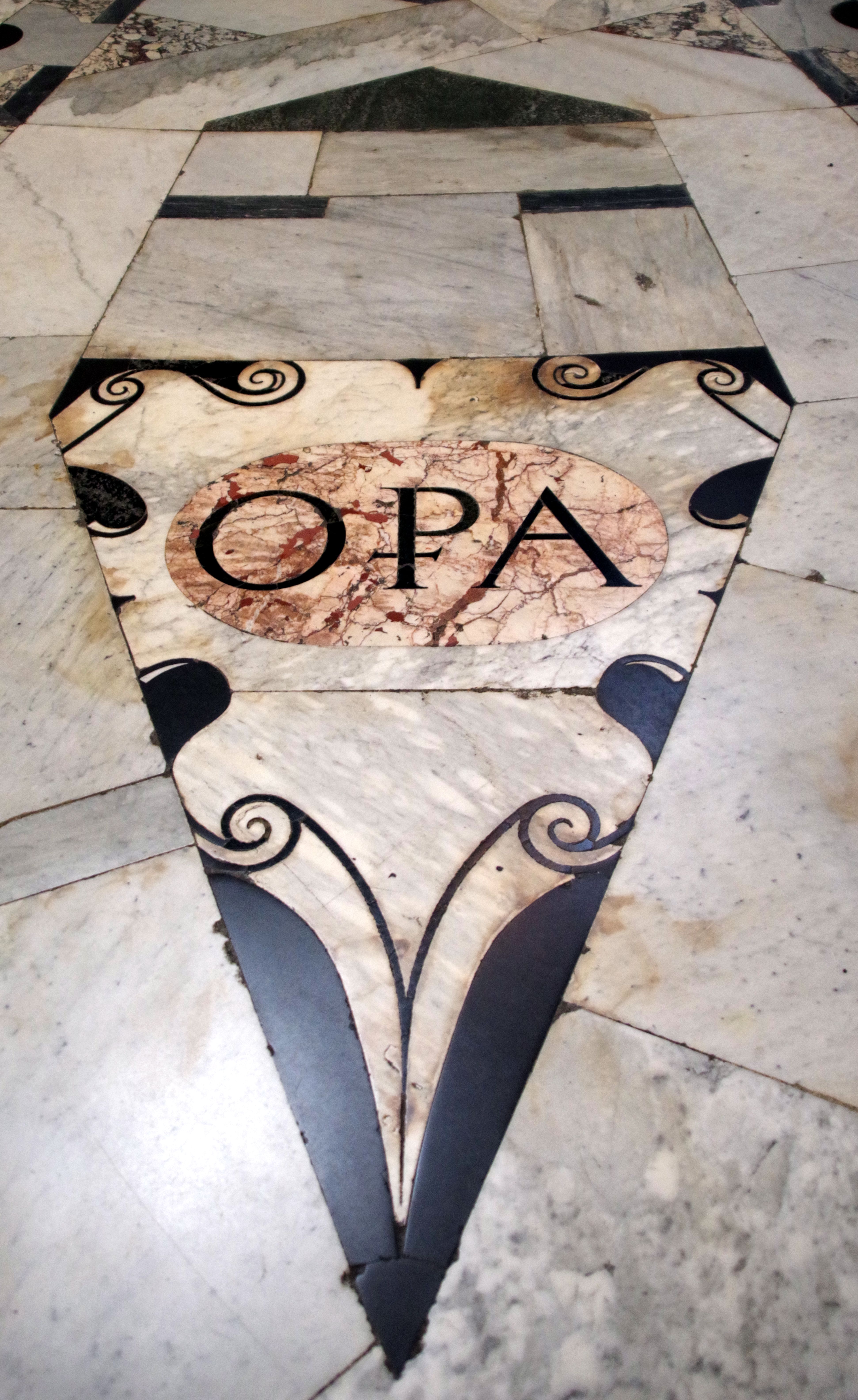 피렌체 대성당 바닥에 있는 ''두오모 오페라'' 로고