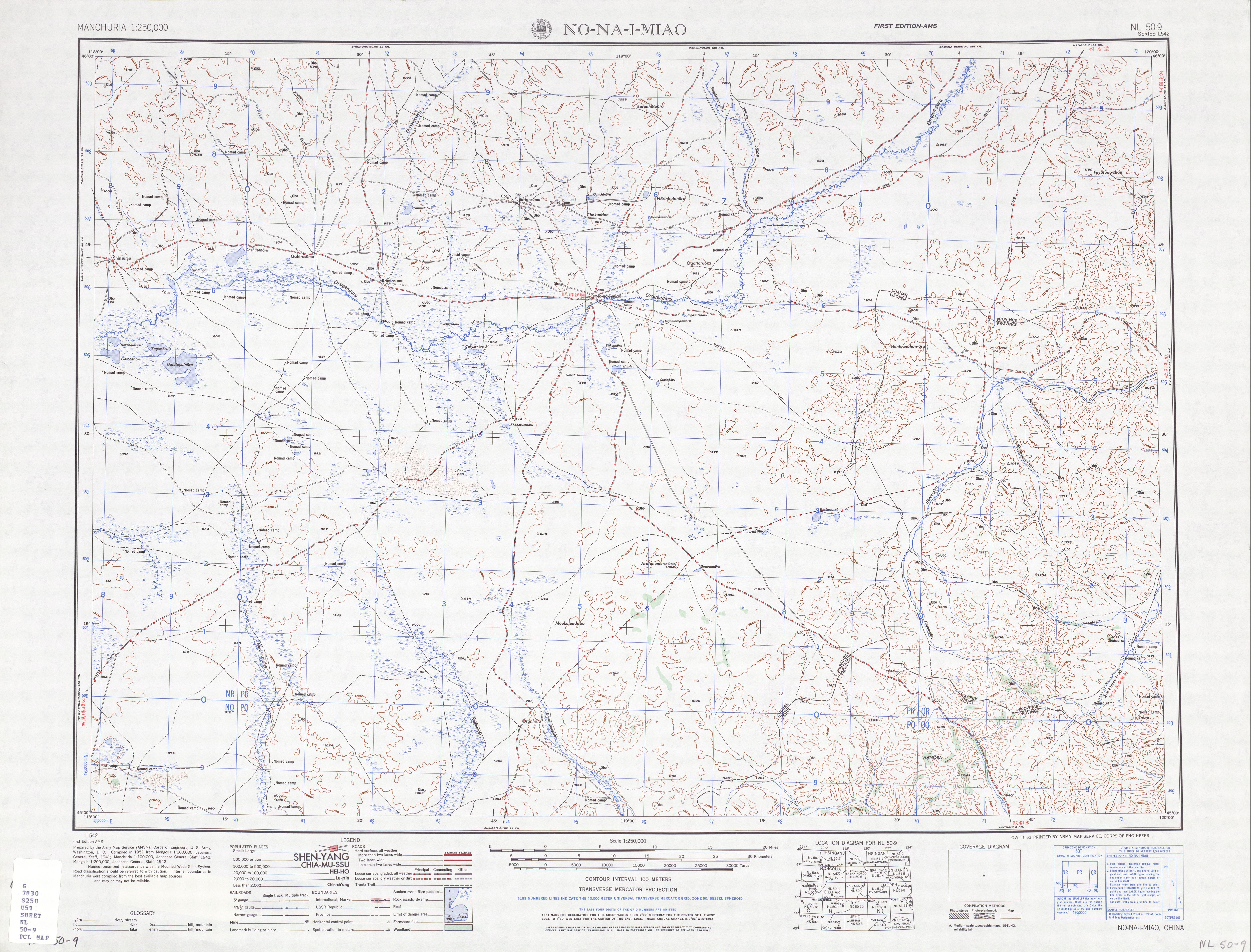 둥우주무친 기의 일부를 포함한 지도 (AMS, 1951)