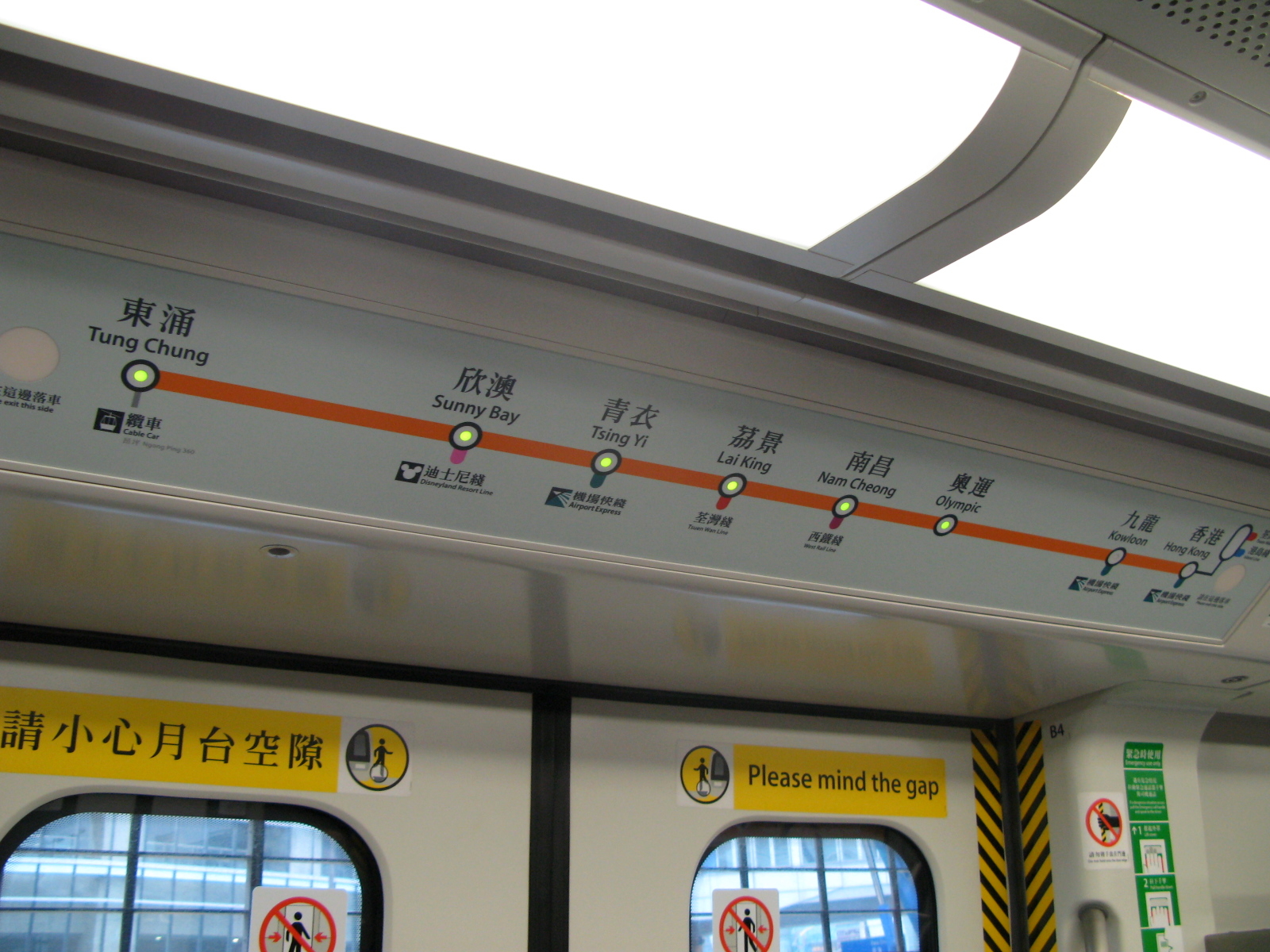 홍콩 공항철도는 1998년 홍콩 국제공항 개항과 함께 개통된 급행 노선으로, 홍콩역, 구룡역, 칭이역을 거쳐 공항역과 아시아월드-엑스포역까지 운행하며, 퉁충선과 일부 구간을 공유한다. - 홍콩 지하철 - 훙함역