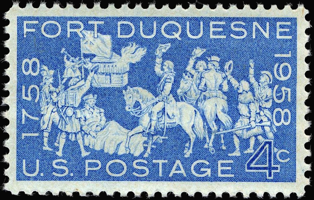1958년 11월 25일, 뒤켄 요새 점령 200주년을 기념하여 미국 우체국은 4센트짜리 뒤켄 요새 200주년 기념 우표를 발행했다. 이 우표는 피츠버그 우체국에서 처음 판매되었다. 우표 디자인은 T.B. 스미스의 에칭과 뒤켄 요새의 블록하우스가 배경에서 불타는 모습을 묘사한 그림을 복합적으로 사용하여 재현되었다.
