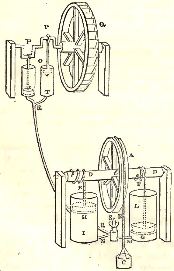 보일러 a의 증기를 콕 c를 통해 실린더 n으로 유도하여, 증기의 압력으로 왕복 피스톤 h를 아래로 밀고, 그 아래의 물을 밸브 o를 통해 송수관 g로 보냈다. 물은 송수관 g에서 필요한 높이까지 양수되어 공기실 r에 모여 수차를 구동했다. 실린더에서 왕복 피스톤을 밀어낸 증기를 대기 중으로 방출하면, 새로운 물이 깔때기 k에서 공급되어 피스톤을 밀어 올려 원래 위치로 돌아갔다.[25]