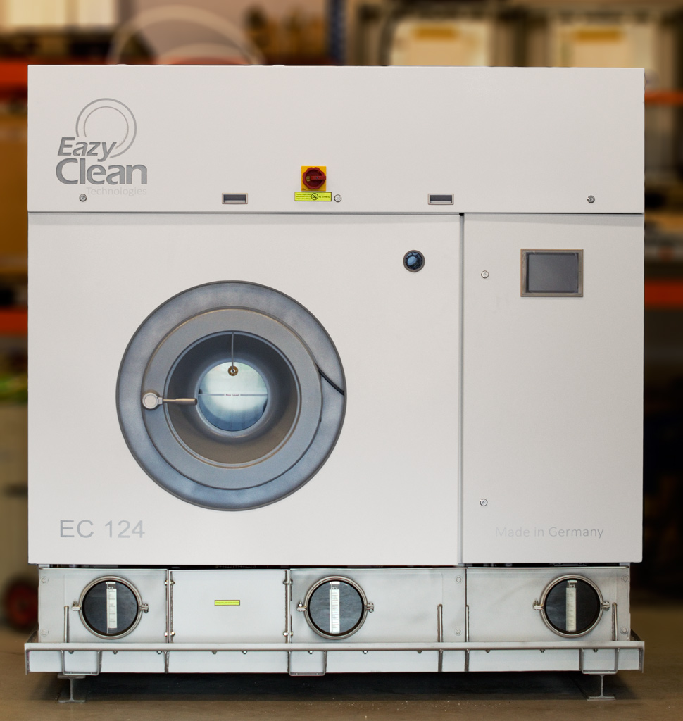 터치스크린과 SPS 제어 기능이 있는 현대식 드라이클리닝 기계. 제조사: EazyClean, 모델 EC124. 설치 전에 촬영한 사진.