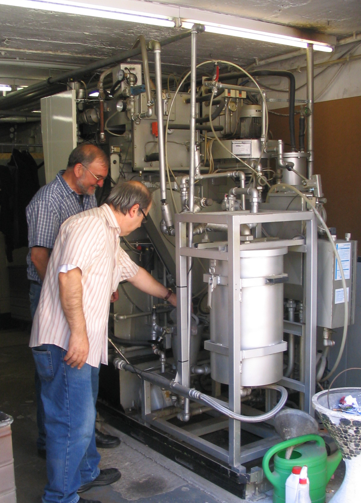 세탁 과정에서 사용된 용제는 다시 사용하기 위해 여러 여과 단계를 거친다. 첫 번째 단계는 '버튼 트랩'으로, 용제 펌프로 들어갈 수 있는 린트, 잠금 장치, 단추, 동전 같은 작은 물체를 걸러낸다.