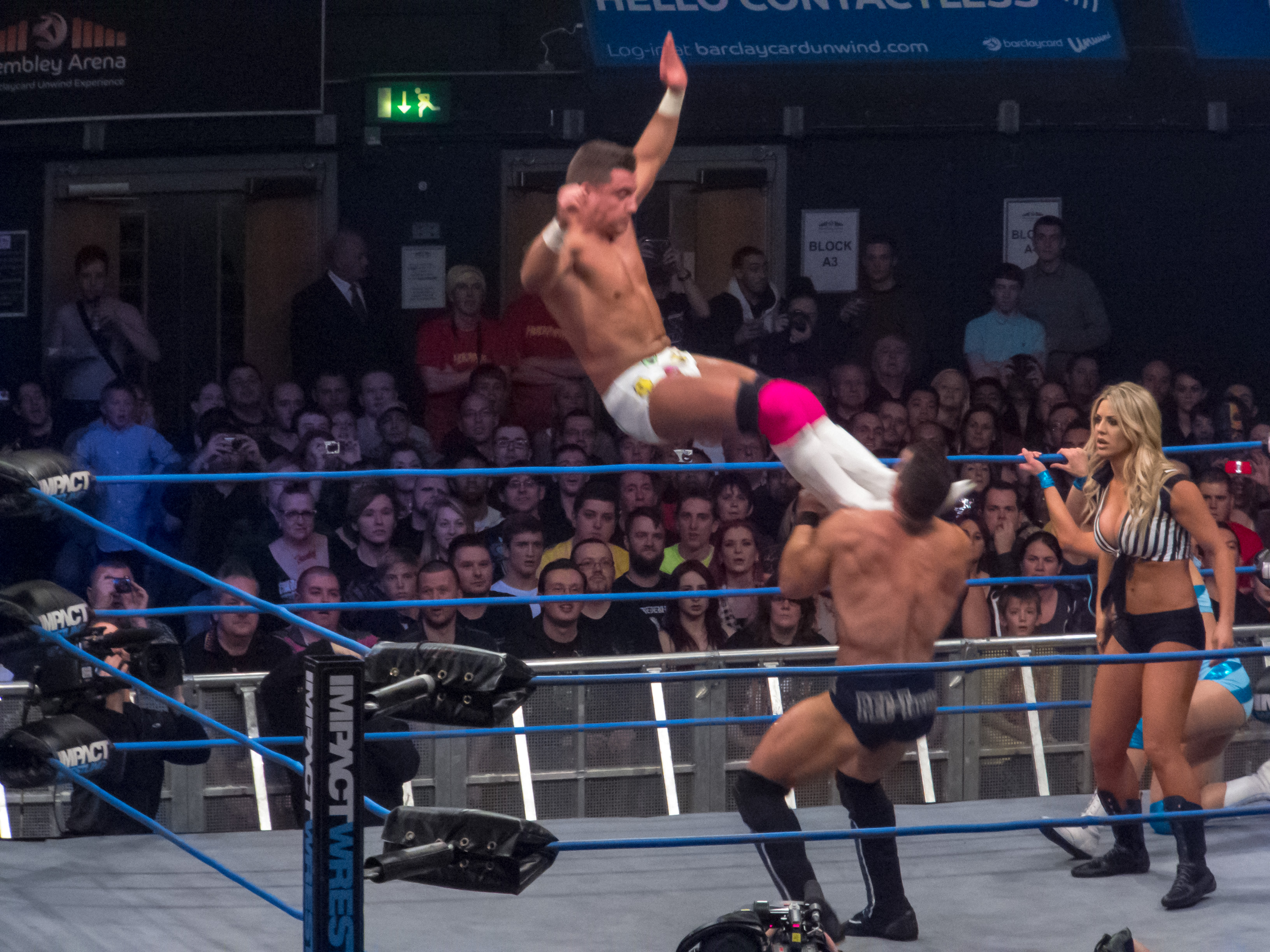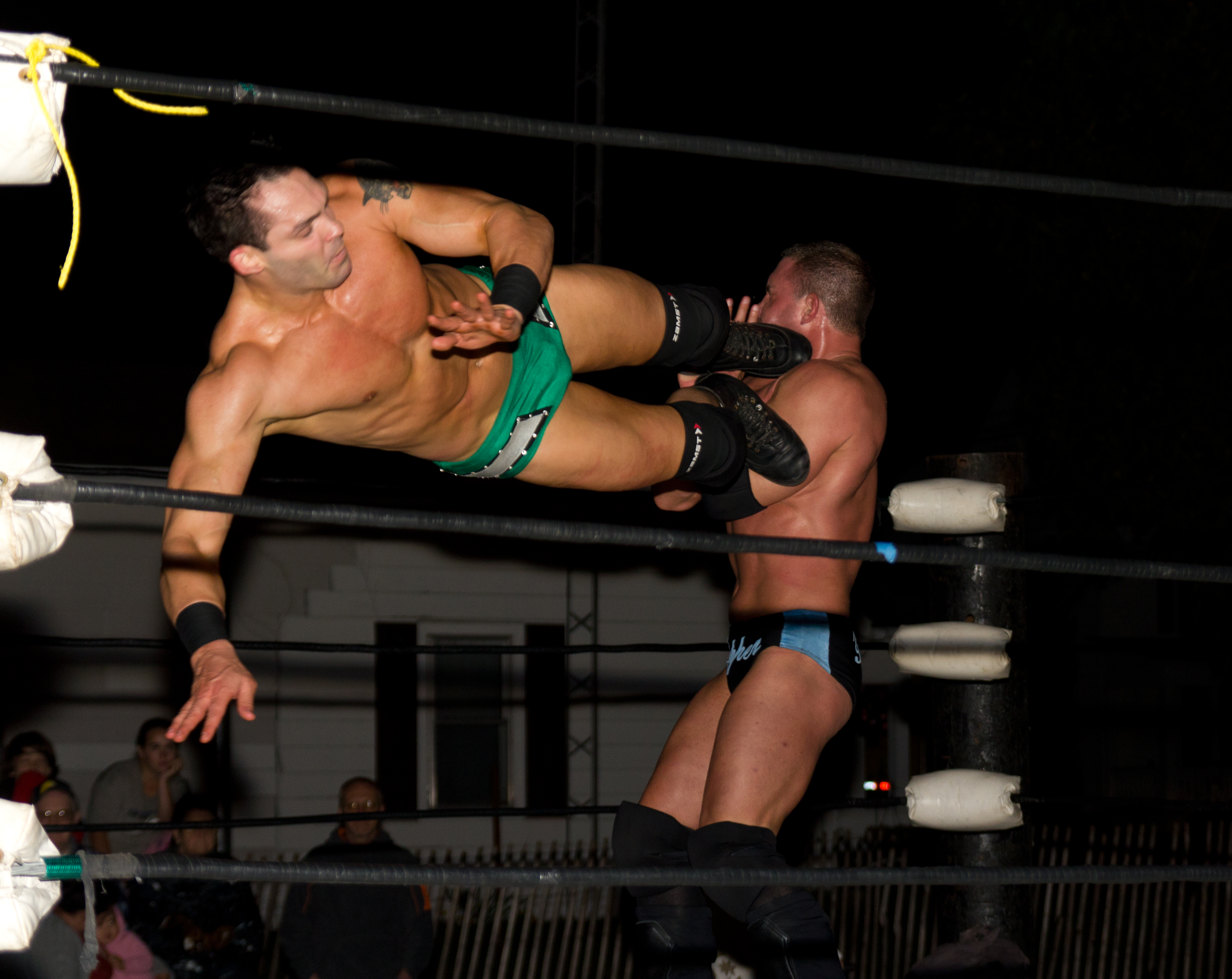 : 코너 탑에 있는 상대를 향한 드롭킥. '''설붕식 드롭킥'''이라고도 불리지만 정식 명칭은 없다. 코너 탑에 앉아 있는 (올라간) 상대를 향해, 그 자리에서 뛰어 드롭킥을 날려 링 밖으로 떨어뜨린다.