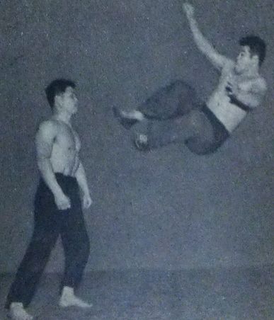 : 앉아 있는 상대를 향해 달려가 얼굴에 날리는 강력한 한 발 드롭킥.