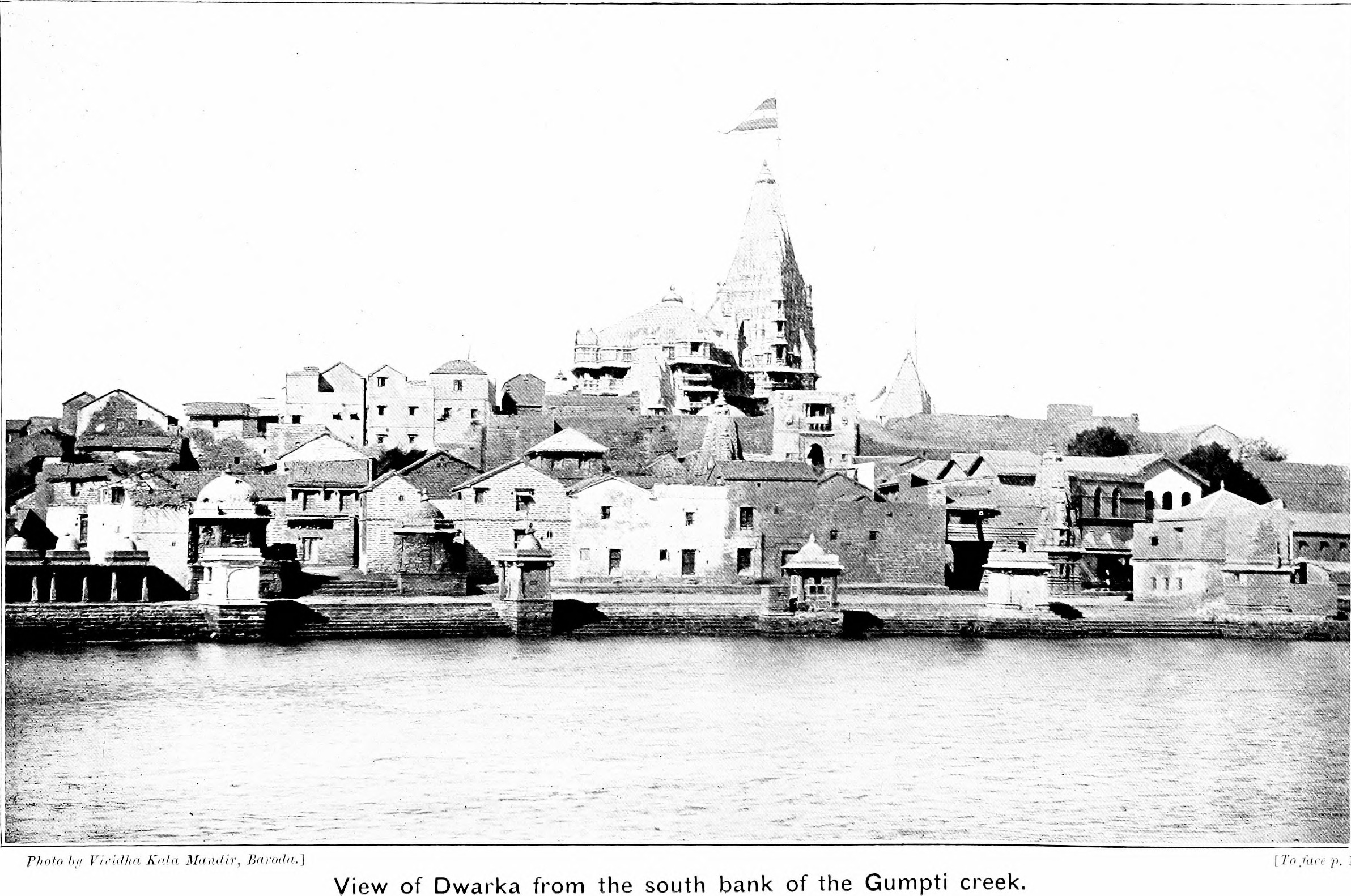 드와르카는 구자라트의 첫 번째 수도로 여겨진다. 드와르카는 또한 역사 전반에 걸쳐 "목샤푸리", "드와르카마티" 및 "드와르카바티"로 언급되어 왔다.[3] 전설에 따르면, 크리슈나는 삼촌 캄사를 마투라에서 물리치고 죽인 후 이곳에 정착했다.[4] 크리슈나는 드와르카를 만들기 위해 바다에서 12 요자나스의 땅을 되찾았다고 한다.[5]