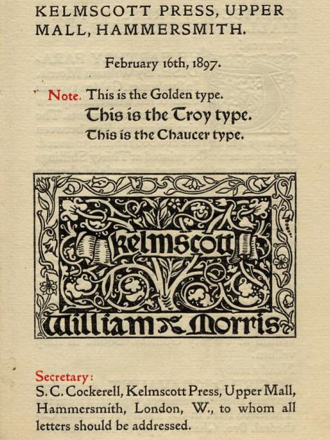 이러한 논쟁 속에서도 윌리엄 모리스가 설립한 캘름스코트 프레스는 중세 및 초기 르네상스 모델에 기반한 골든 타입과 같은 맞춤형 서체를 제작하며 큰 영향을 미쳤다. 많은 파인 프레스 인쇄업자들이 그의 방식을 따랐다.[13] 활자 주조업자 탈보트 베인스 리드는 1890년, 모리스를 위해 서체를 만들기 직전에 당시 유행하던 장식적이고 변형된 서체들에 대해 우려를 표하며 전통적인 모델에서 벗어나는 경향을 지적하기도 했다.[13]